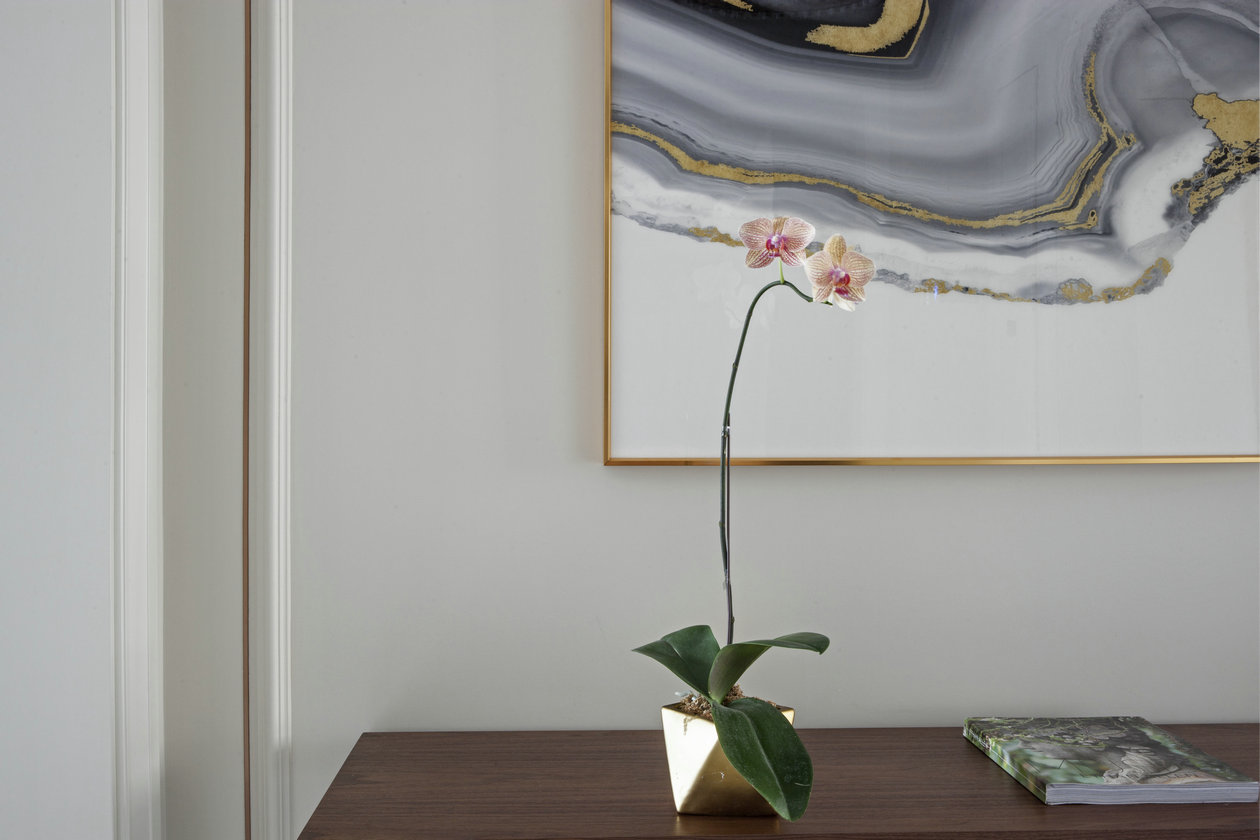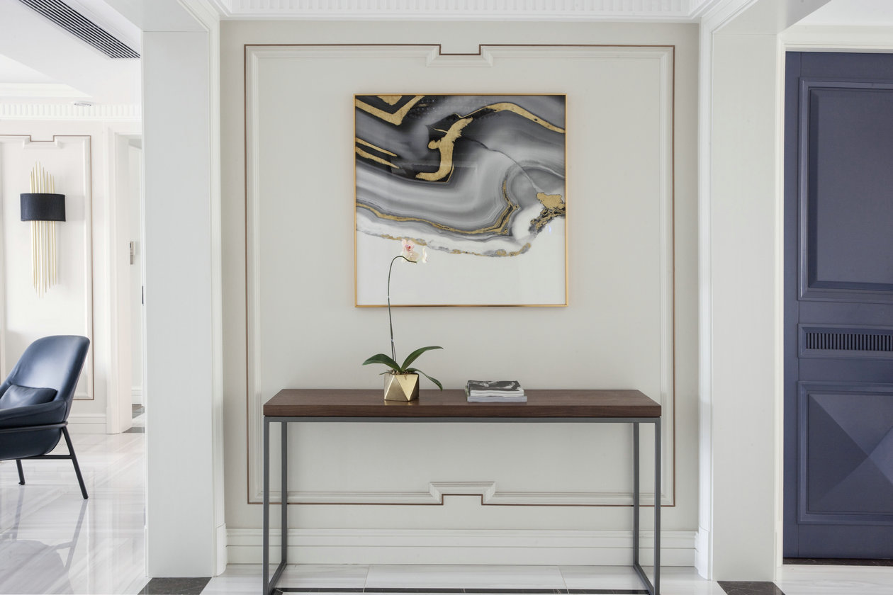 黄铜的精彩应用,尽情演绎了材质和精湛工艺所承载的文化和创意。在玄关,装饰画等配饰上黄铜元素的彼此呼应,更是让每一处细节由内而外散发出气质美感。