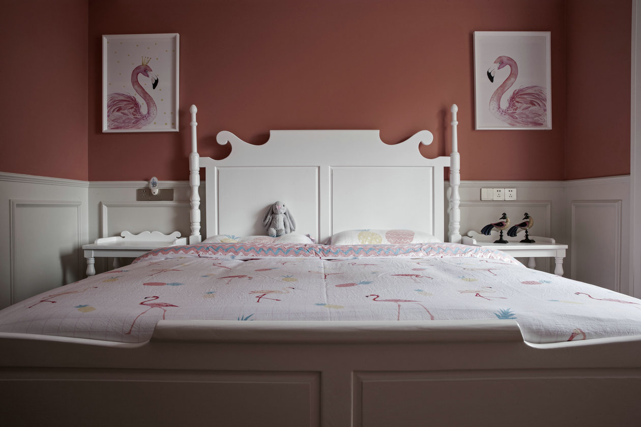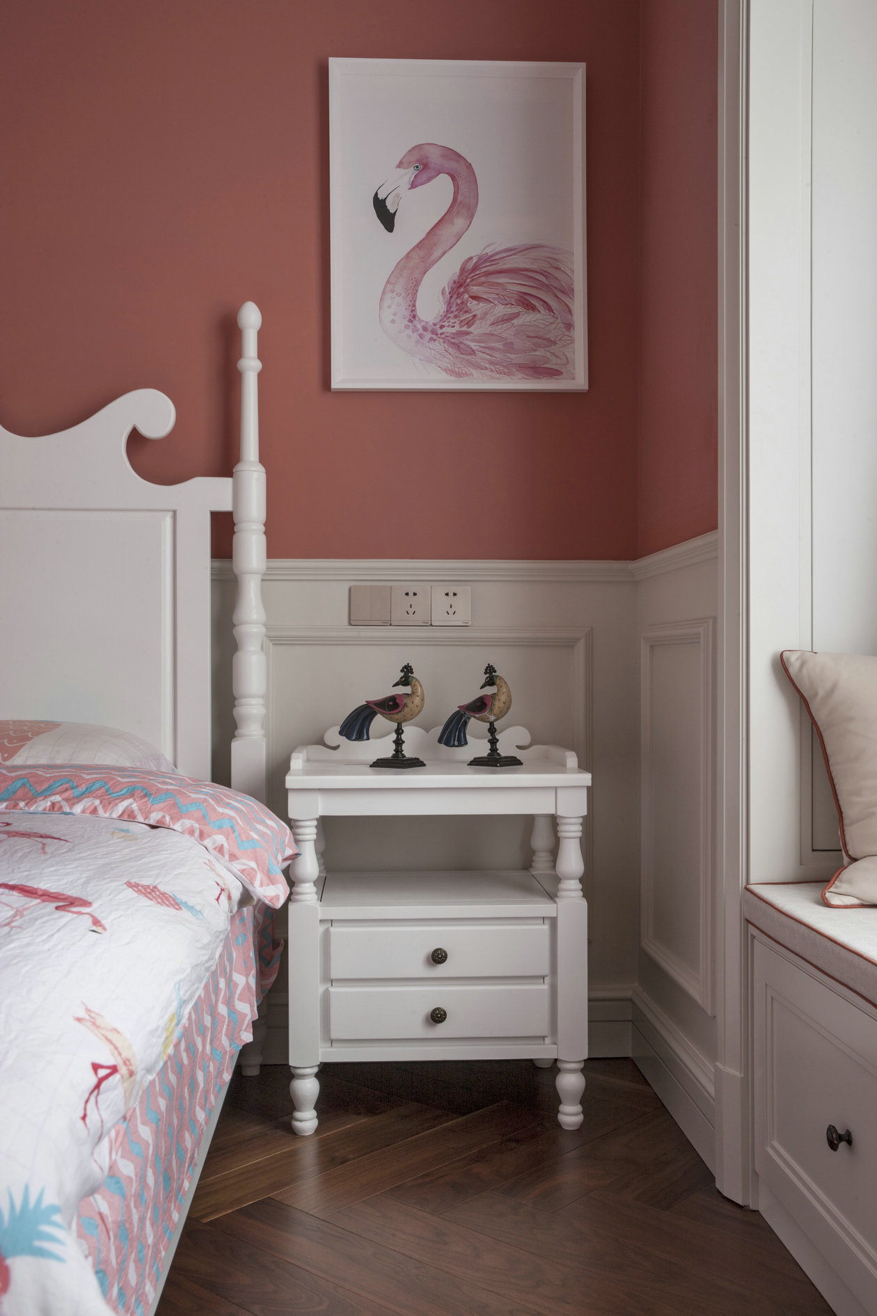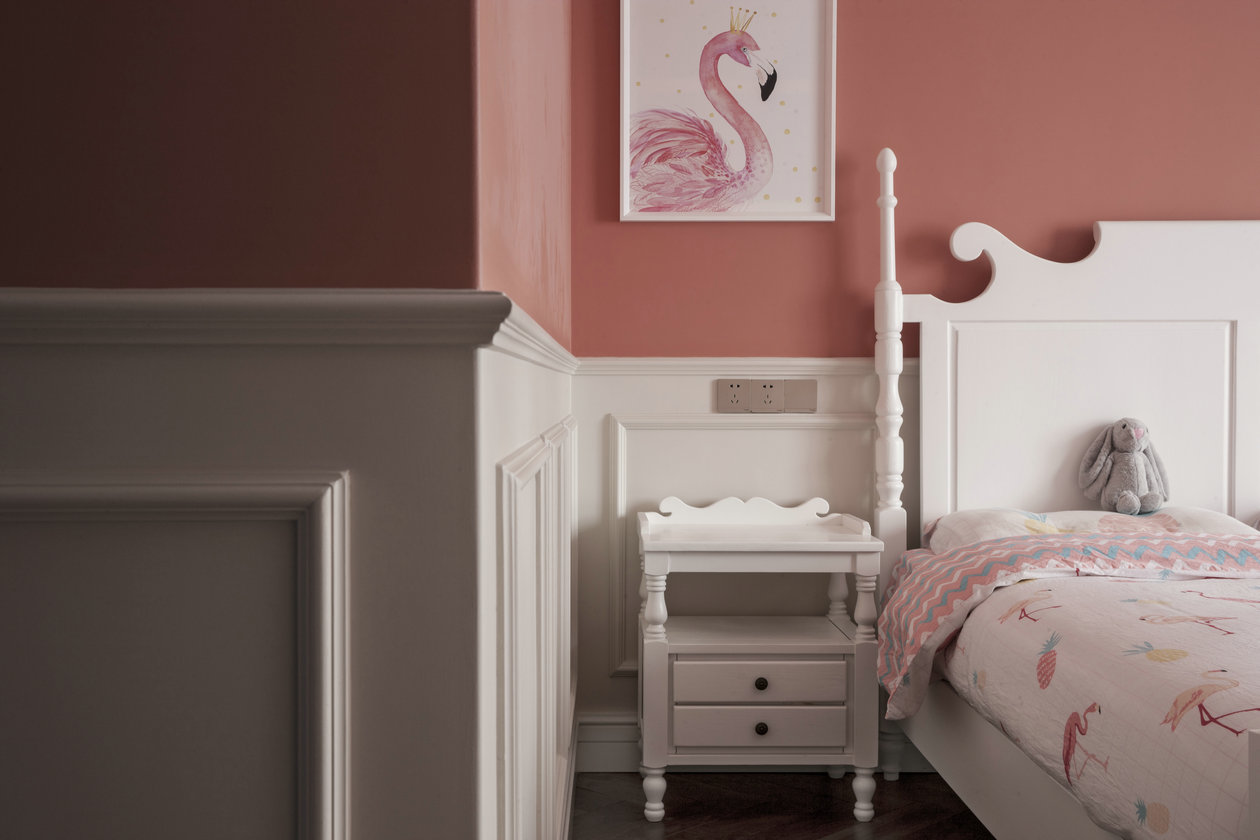 女孩房以珊瑚粉为主色,高雅而不甜腻,充分营造出了含苞待放的少女之感。