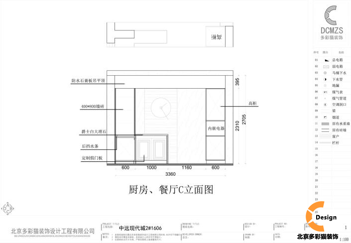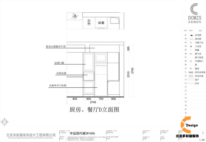 这边做的是一整面的高柜,内嵌式的电器和内嵌式的冰箱,都和橱柜融为一体,看着更加的整洁,大方。柜门上面是描金的线框,看