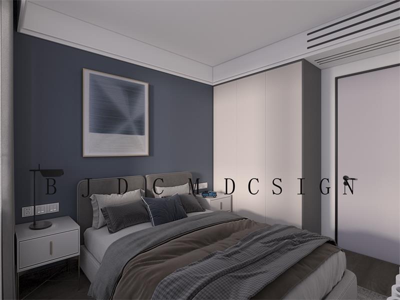 卧室以经典米白色为底色,干净利落的床头跳色搭配,温和自然,是一个安静舒适的睡眠环境。
