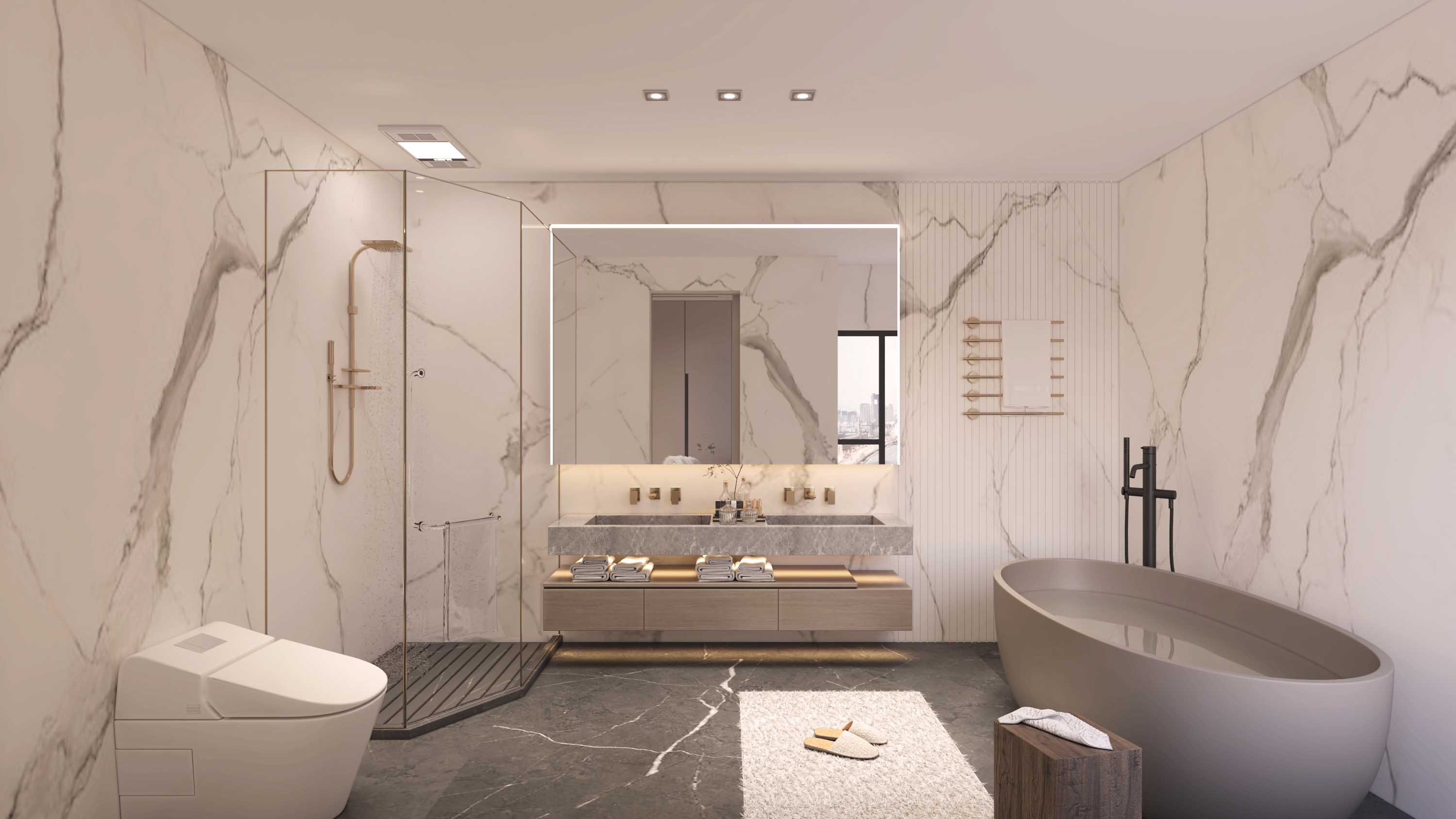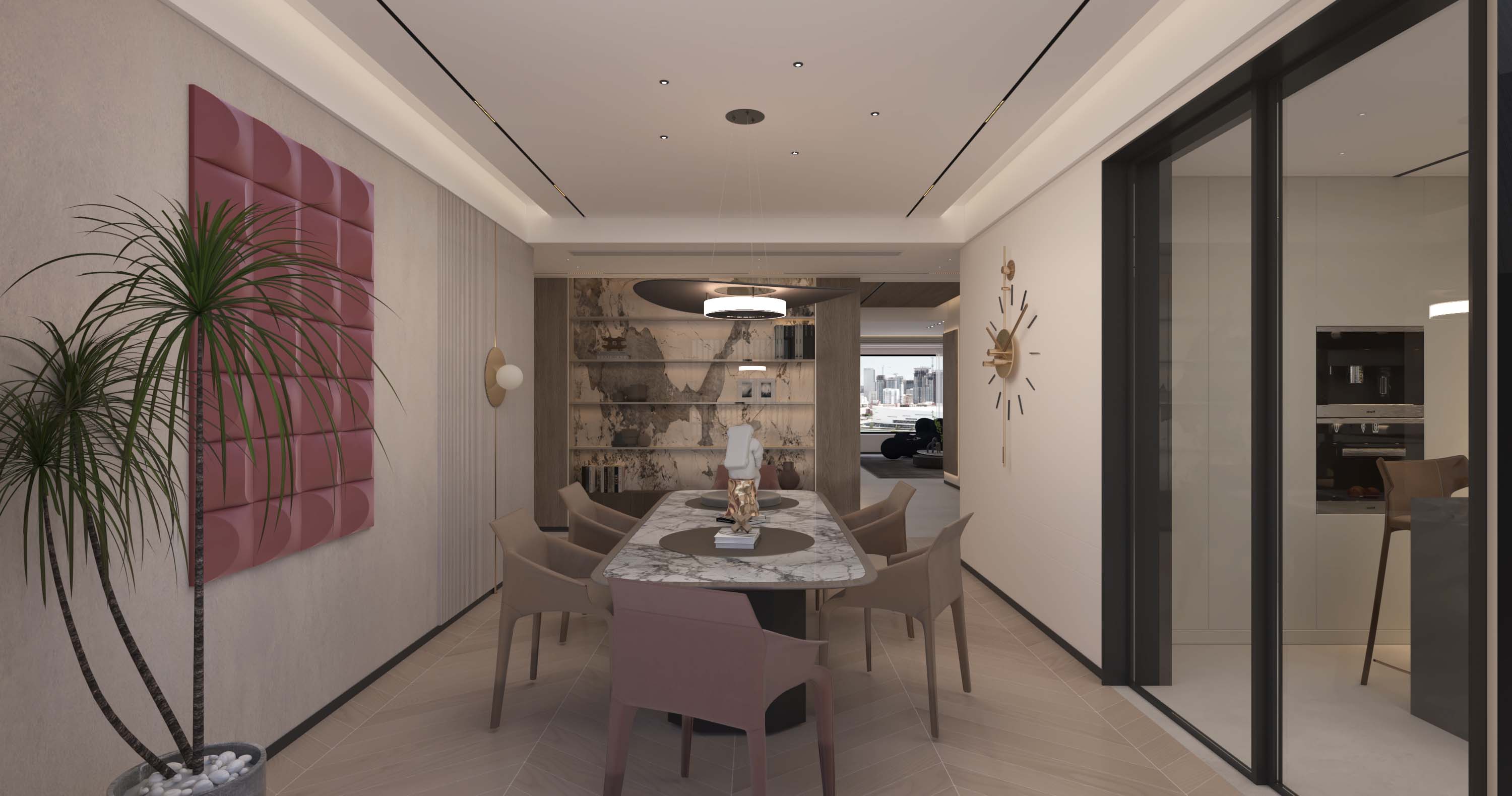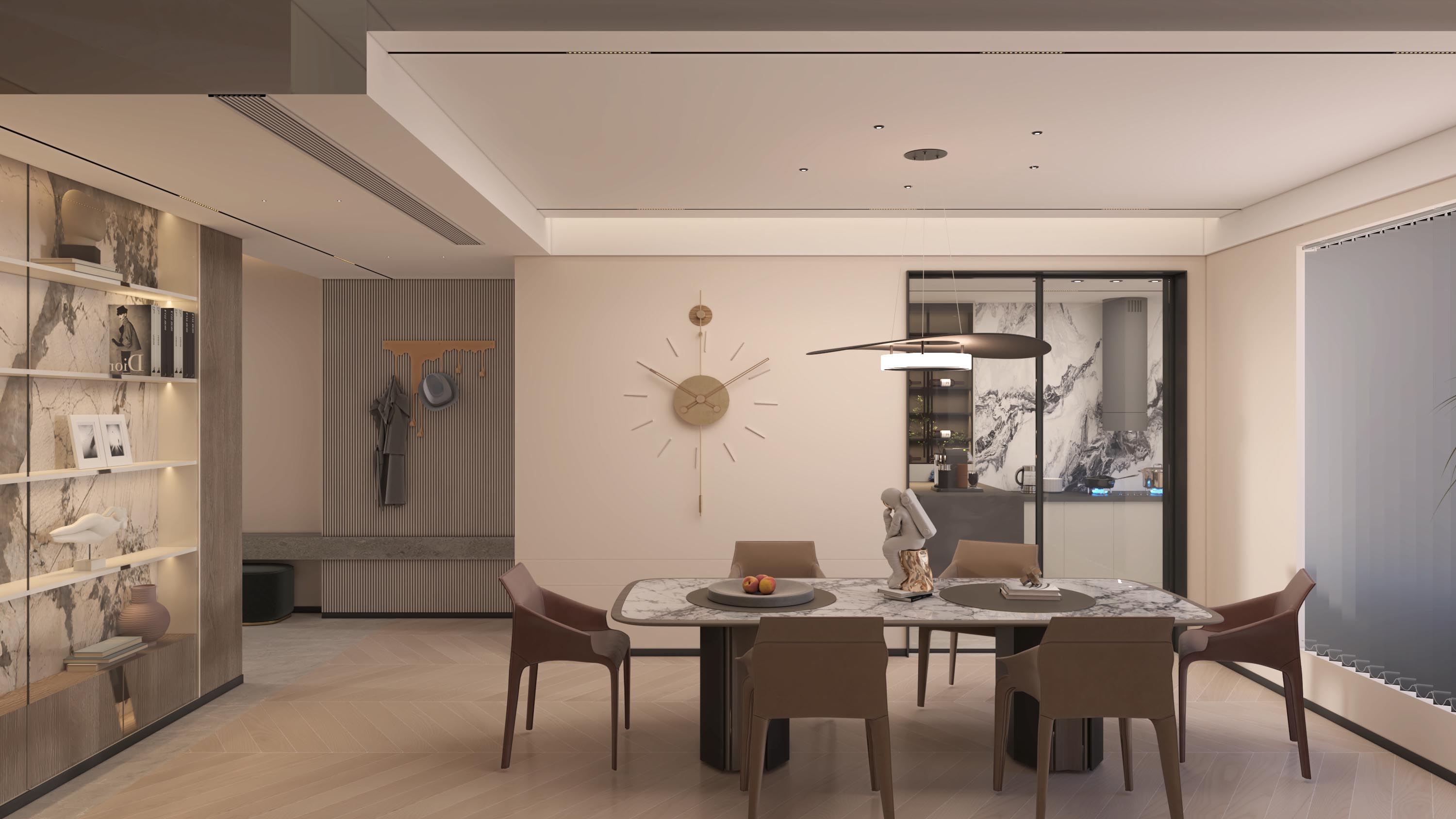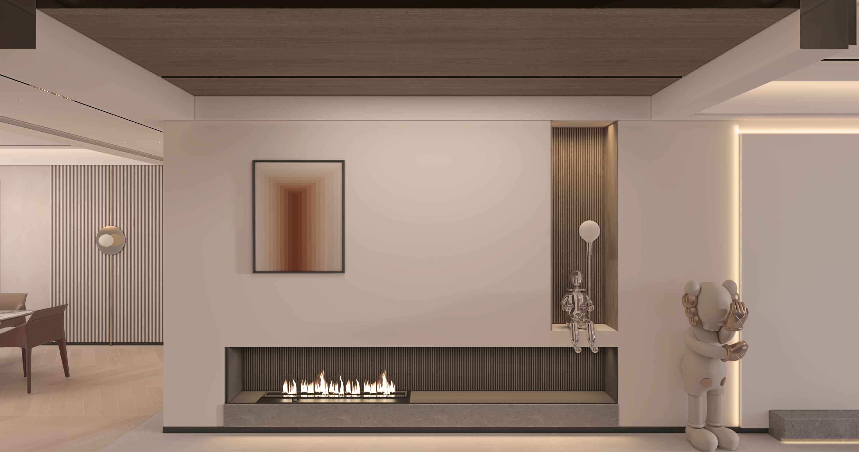木饰面与大理石的交互,如季节的更迭,丰富了墙面空间的层次,更蕴含着一缕东方的禅意。