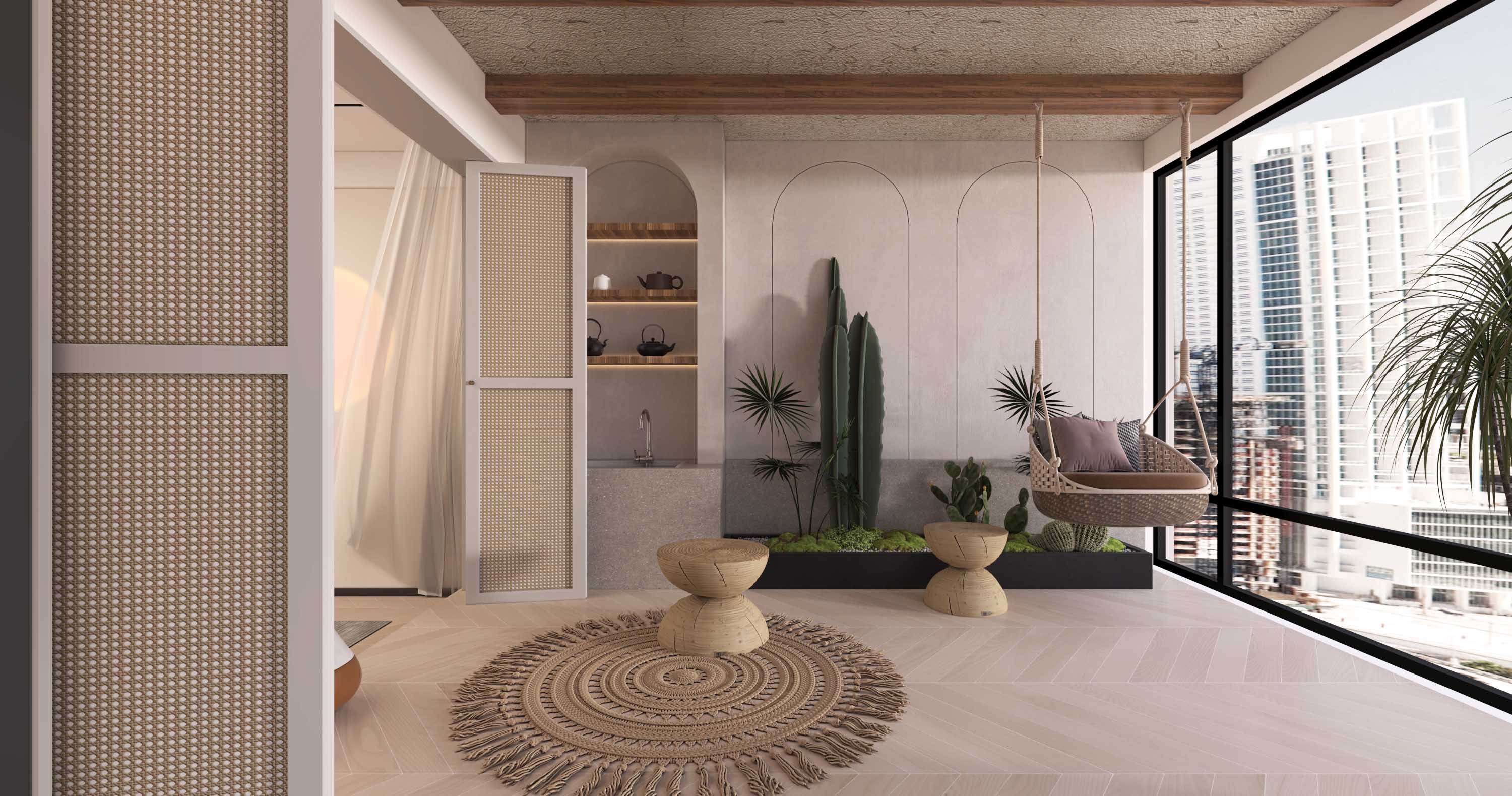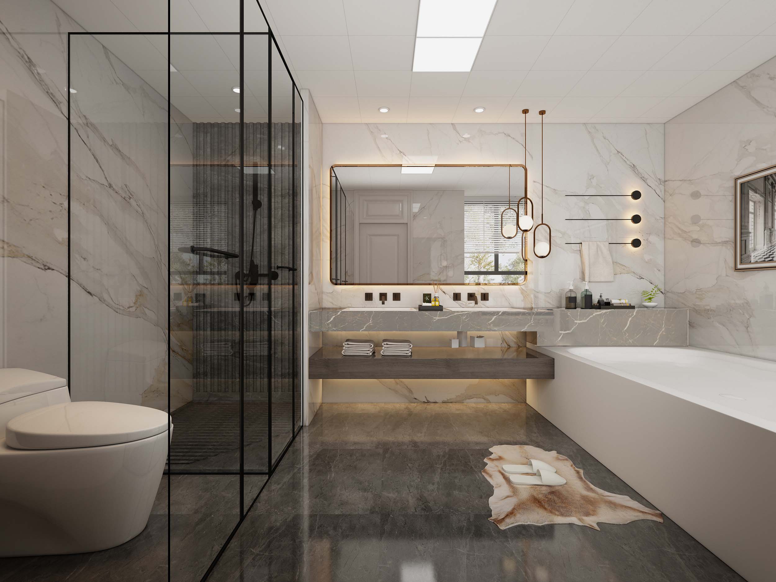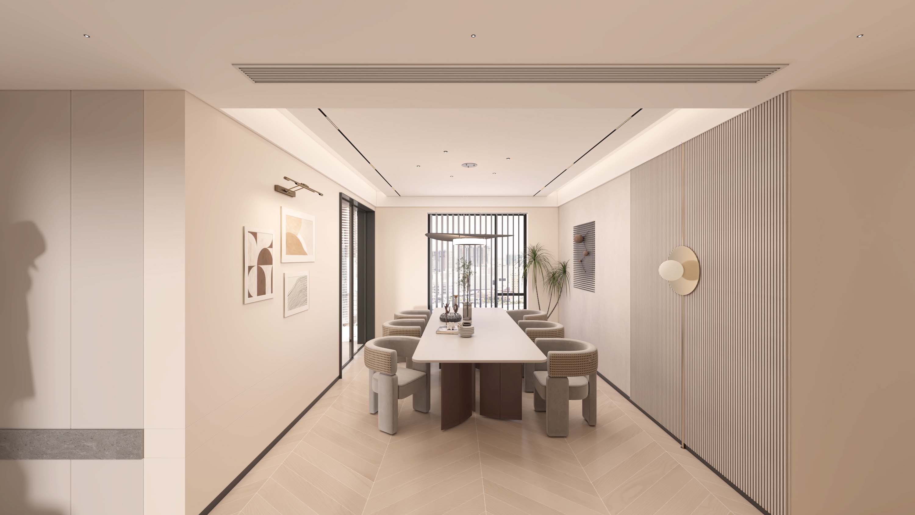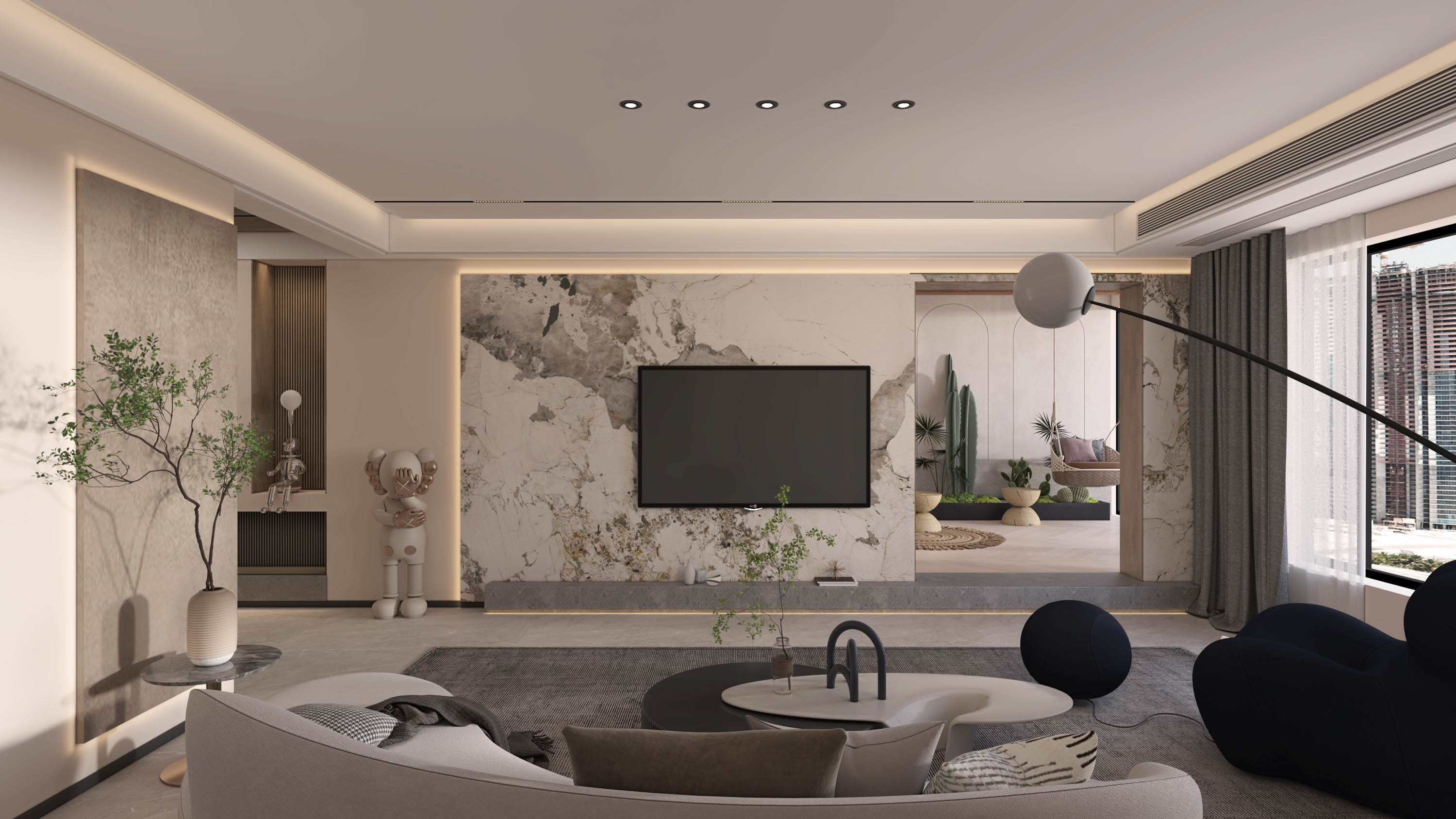 木饰面与大理石的交互,如季节的更迭,丰富了墙面空间的层次,更蕴含着一缕东方的禅意。