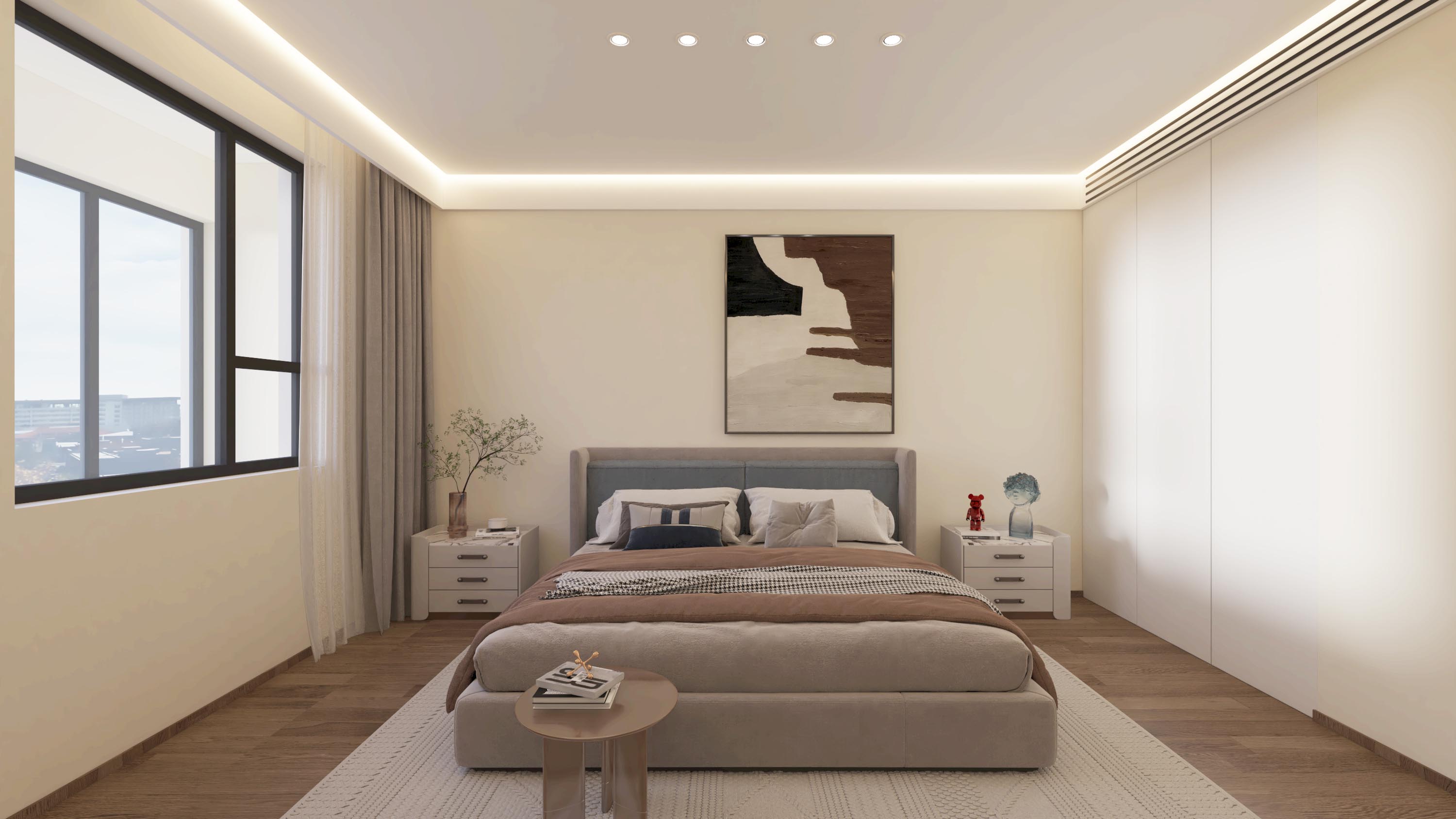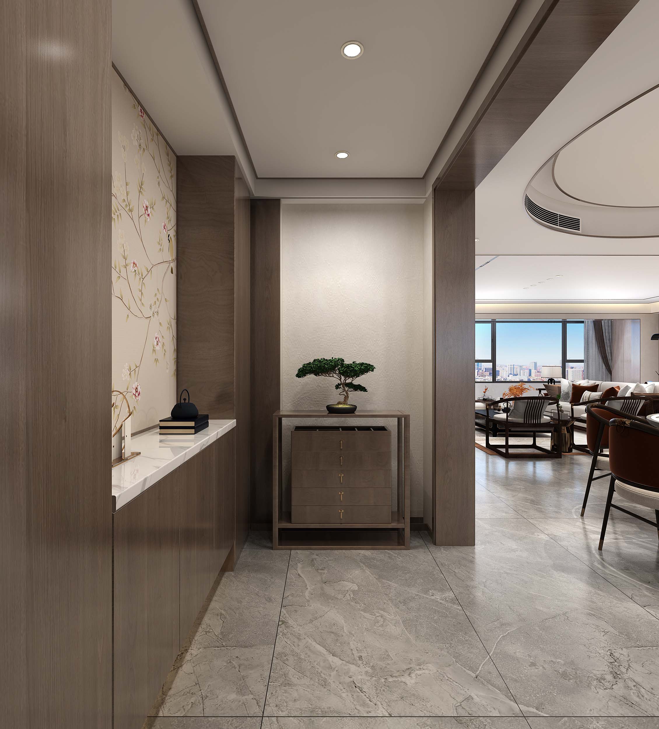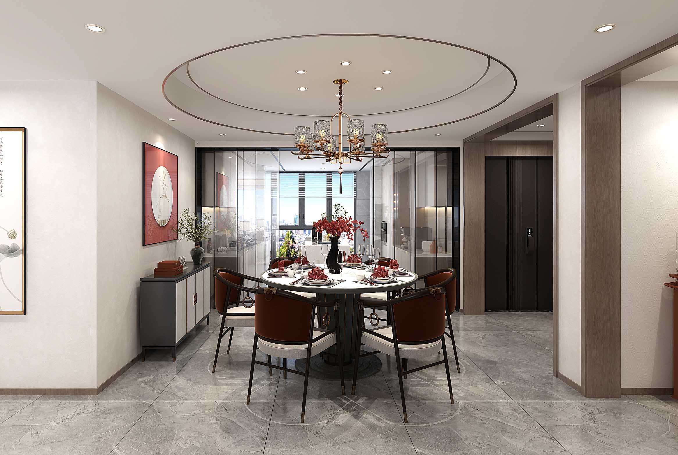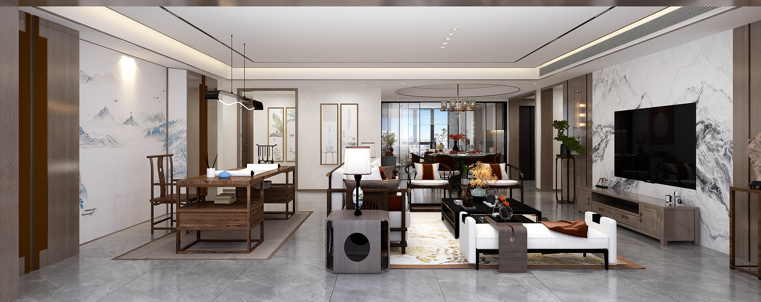 本案,删繁就简,融合东方古典美学与现代新文化元素,展现了新中式独有的文化神韵以及现代简约的优雅。