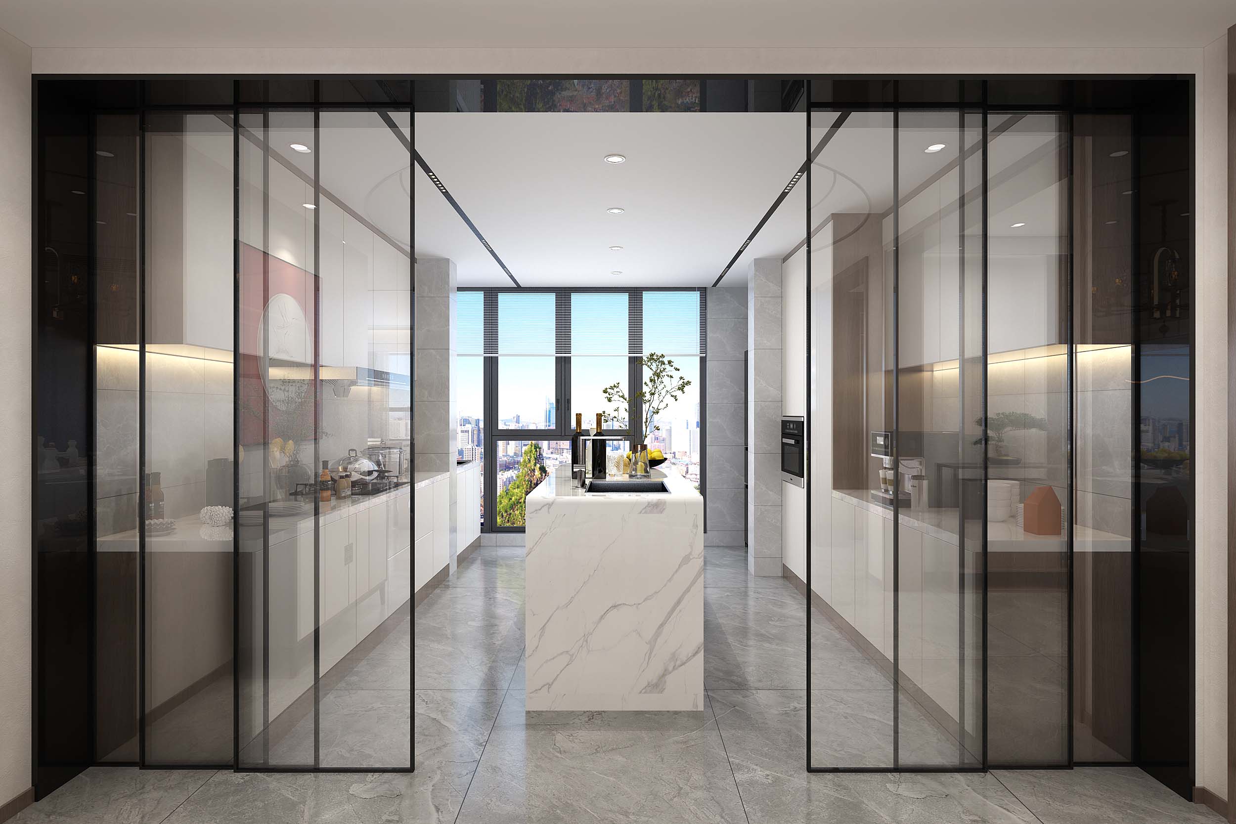 线条干脆利落的精致餐椅、时尚极简的餐桌等,营造了餐厅灵动柔软的氛围。仪式感是情感催化剂,在具有仪式感的场景中,充满温情的家庭大餐,时常都有发生。
