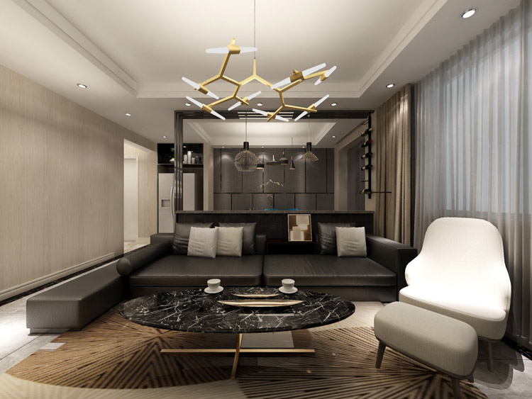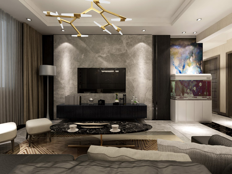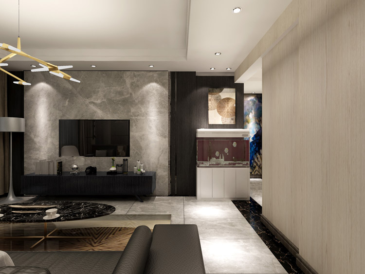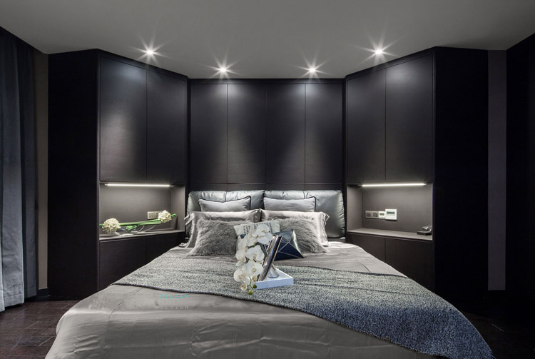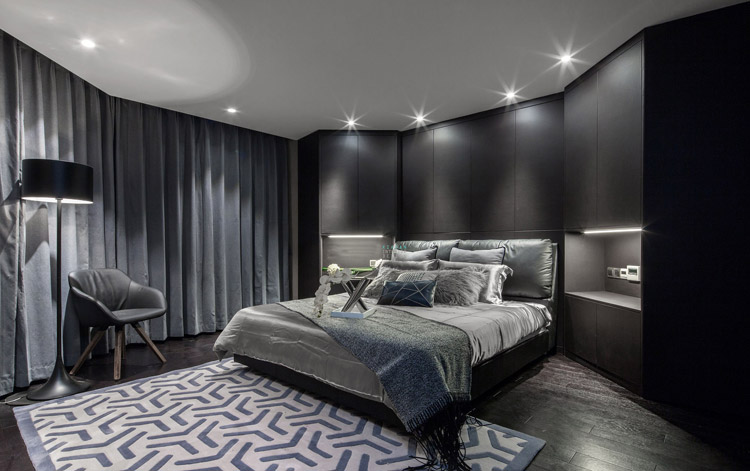 极具设计感的现代空间,搭配黑暗中透着冷冽的壁面,不经过任何处理的木皮保持天然的肌理,呈现原滋原味的美感。所有的材质本身都有自己的情绪和记忆,设计师如何巧妙地将每一种情绪记忆应用在空间中是非常重要的一件事。