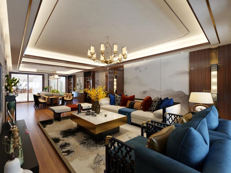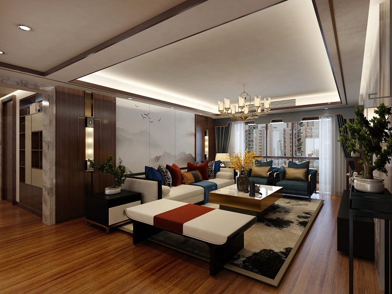 寄托怀旧情绪的新中式家具,电视墙的天然石材和天然木饰面自然融合,石材让我们想到了山,木让我们想到了林,自古有山的地方就有林也正好和沙发背景的连绵山脉相呼应,将古意与主人的心绪融合。温暖的窗边,惬意的角落,处处皆风情,细水流长的意境正如家的故事。