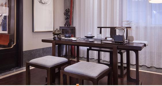会客厅运用框景、借景等造型方式,画中山,鸟儿鸣,意有所极,梦亦同趣,沉稳的木色,纯净自然的质朴之美,以灰、白、米黄为基准色调,营造一份淡然的东方韵味;一步一景致,移步见天地。