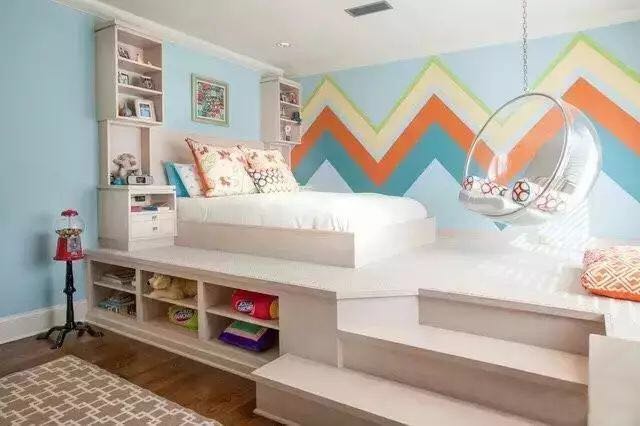 将升降台升起,房间即刻转换成待客厅,聊天喝茶、打牌下棋……将升降台降下,既可以作为孩子的游戏室,又可以作为客房使用。