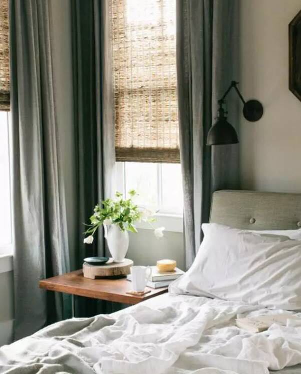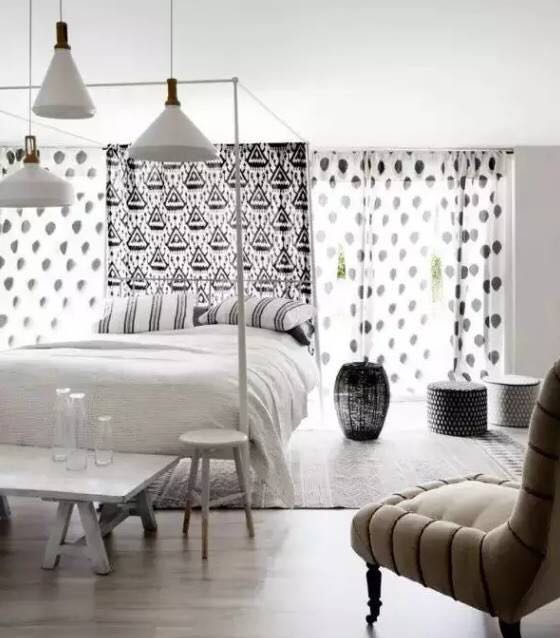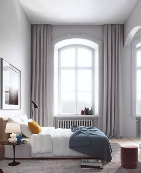 卧室窗帘也可以根据房间的朝向做出选择,南向卧室可以选择挡光、隔热、隔音效果比较好的绒面材料窗帘;而北向卧室的窗帘就相对来说“随便”一些,只要注意隔音和挡光性即可。