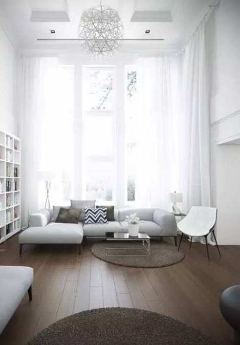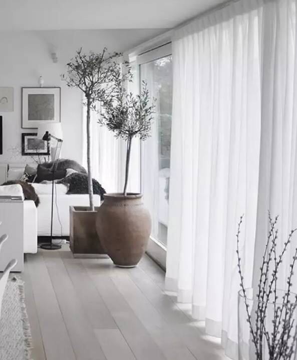 白色:白色的窗帘适用于任何空间,给人带来一种清新脱俗的感觉。它是空间的百搭色彩,大方优雅,仙气十足。但是,白色的不足之处就在于容易弄脏,不喜欢频繁清洗的屋主最好慎重考虑。