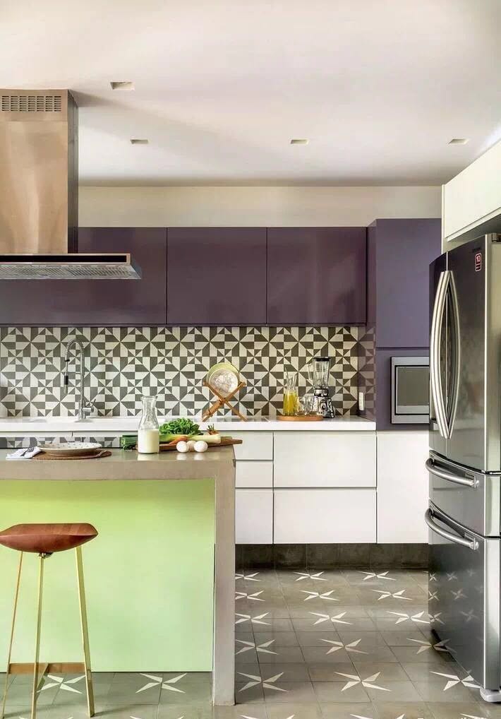 厨房的墙面一般比较单调,实用性远远胜过了装饰性,因而没有太大的亮点。如果用花砖进行装饰,和其他单色砖形成一个视觉上的对比,或许就能轻松打造视觉焦点了。