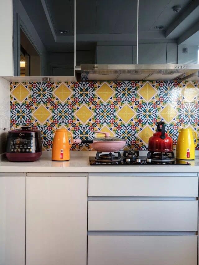 现在厨房瓷砖已经不流行通铺了,很多人都喜欢这样铺!