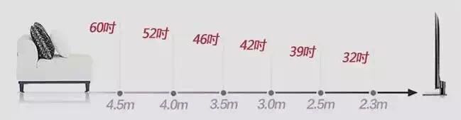③沙发与电视间的距离:至少需要1300mm,建议在1700mm以上,太近会影响视线。如果客厅面积太大,沙发和电视的距离超过了1.3M,电视应该选多大呢?