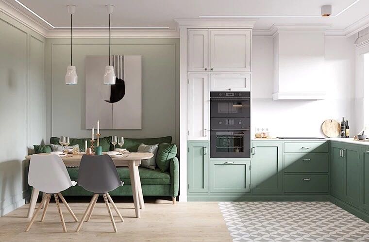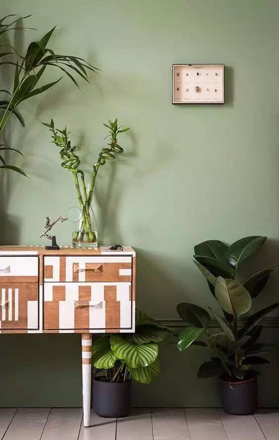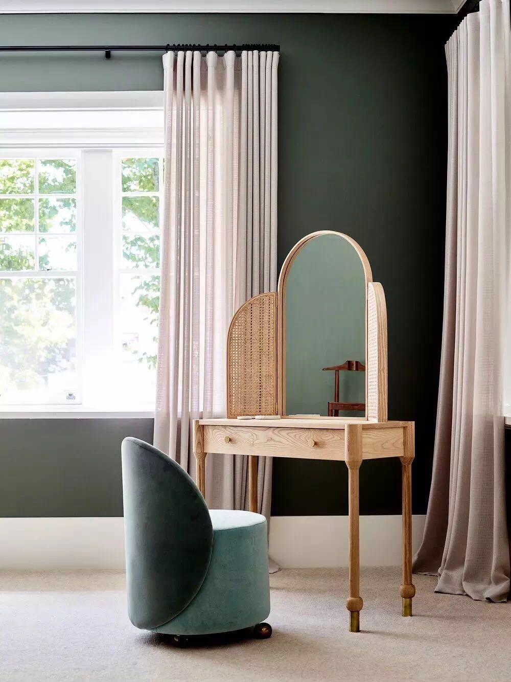 灰豆绿可以作为大量的墙面色彩使用,也可以用窗帘、椅子、沙发等软装作为色彩载体进行局部性点缀,它不仅可以点亮空间,还能带来赏心悦目的感觉,富有治愈气息,也许你看到它的第一眼就会深深沦陷。