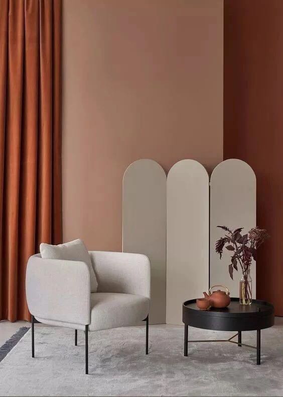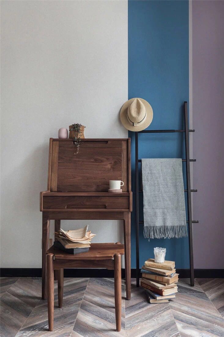 这种色调的饱和度很低,乍看之下有种脏脏的感觉,但是大面积地铺陈于家居空间,与纯白、雾霾蓝、高级黑等养眼的色调搭配起来,反而比