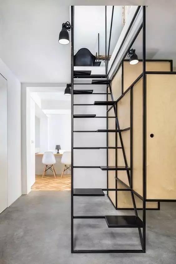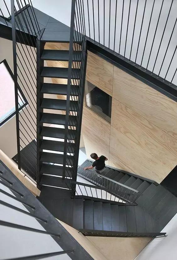 直梯最为常见也最为简单,颇有一意孤行的味道,几何线条给人挺括和“硬”的感觉。直梯加上平台也可实现拐角。