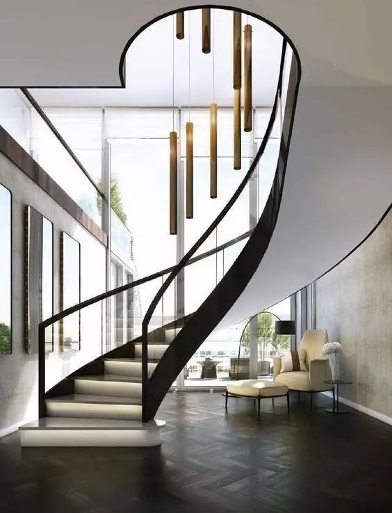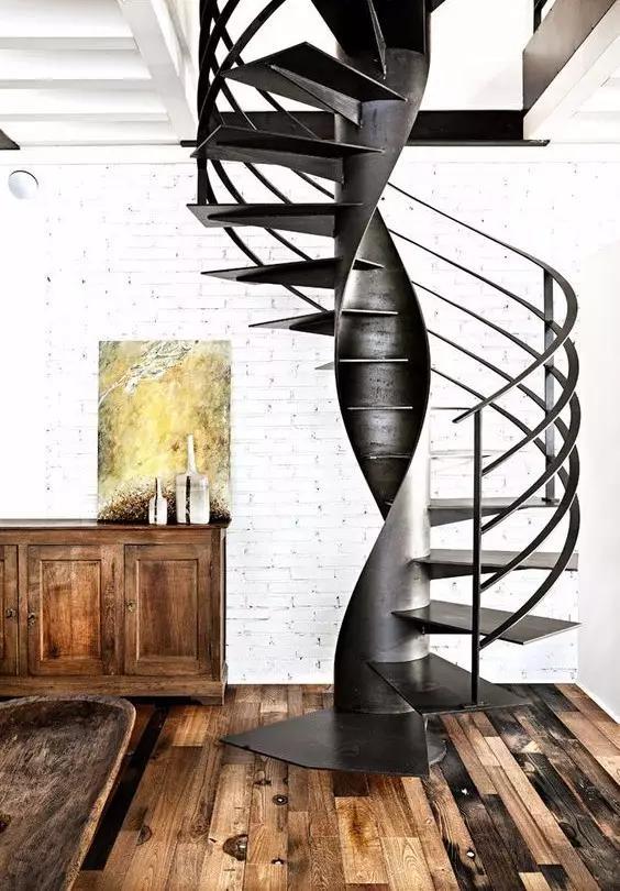 旋转楼梯对空间的占用最小,盘旋而上的蜿蜒趋势也着实让不少人着迷。