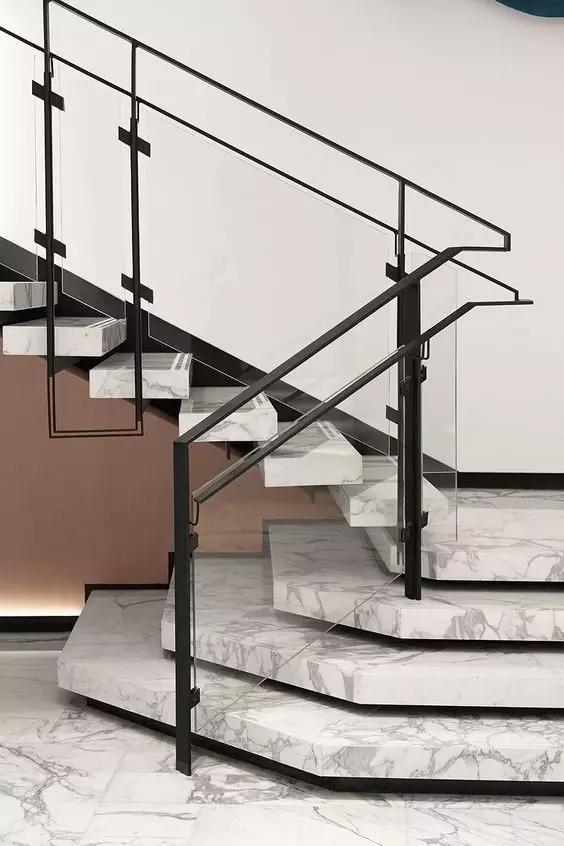 大理石楼梯比较适合大空间,比如说别墅装修,显得非常大气。而且,这种材质的楼梯更适合室内已经铺设大