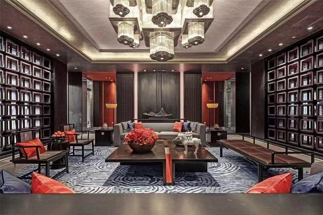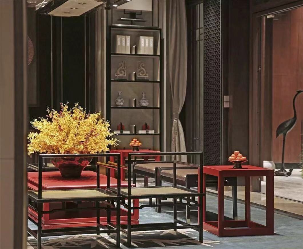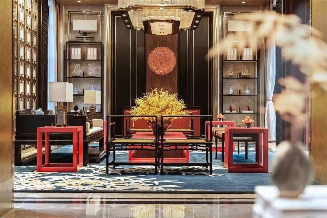 简洁典雅的玫瑰椅,端正清秀的坐榻,气质雍容的茶几边桌,质感上乘的柔软地毯,赋予空间古雅、质朴又不失现代的美感;其古朴的造型与正统的设色,