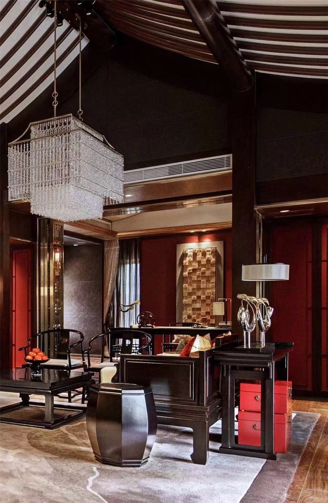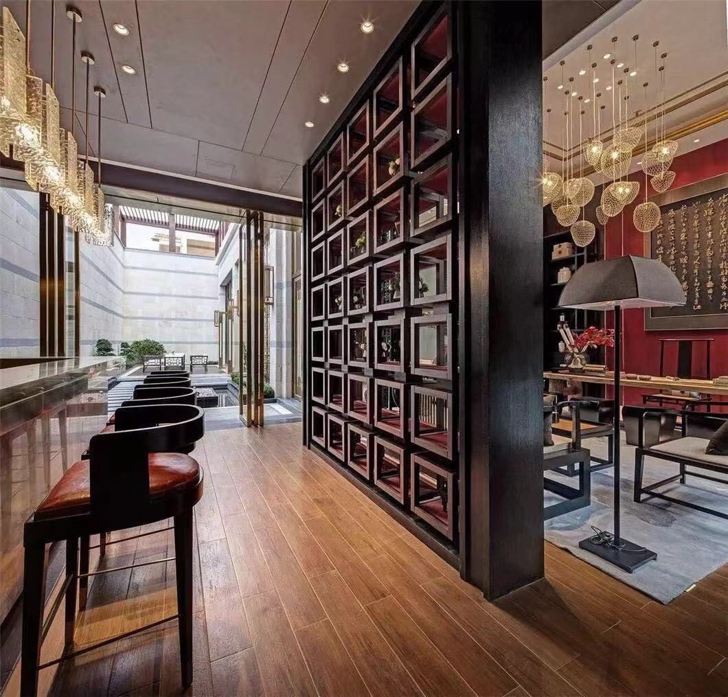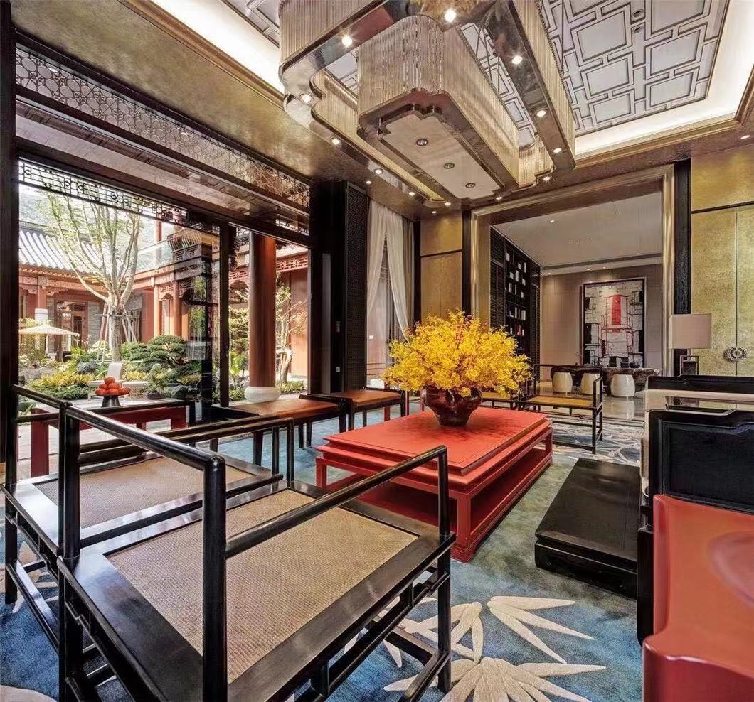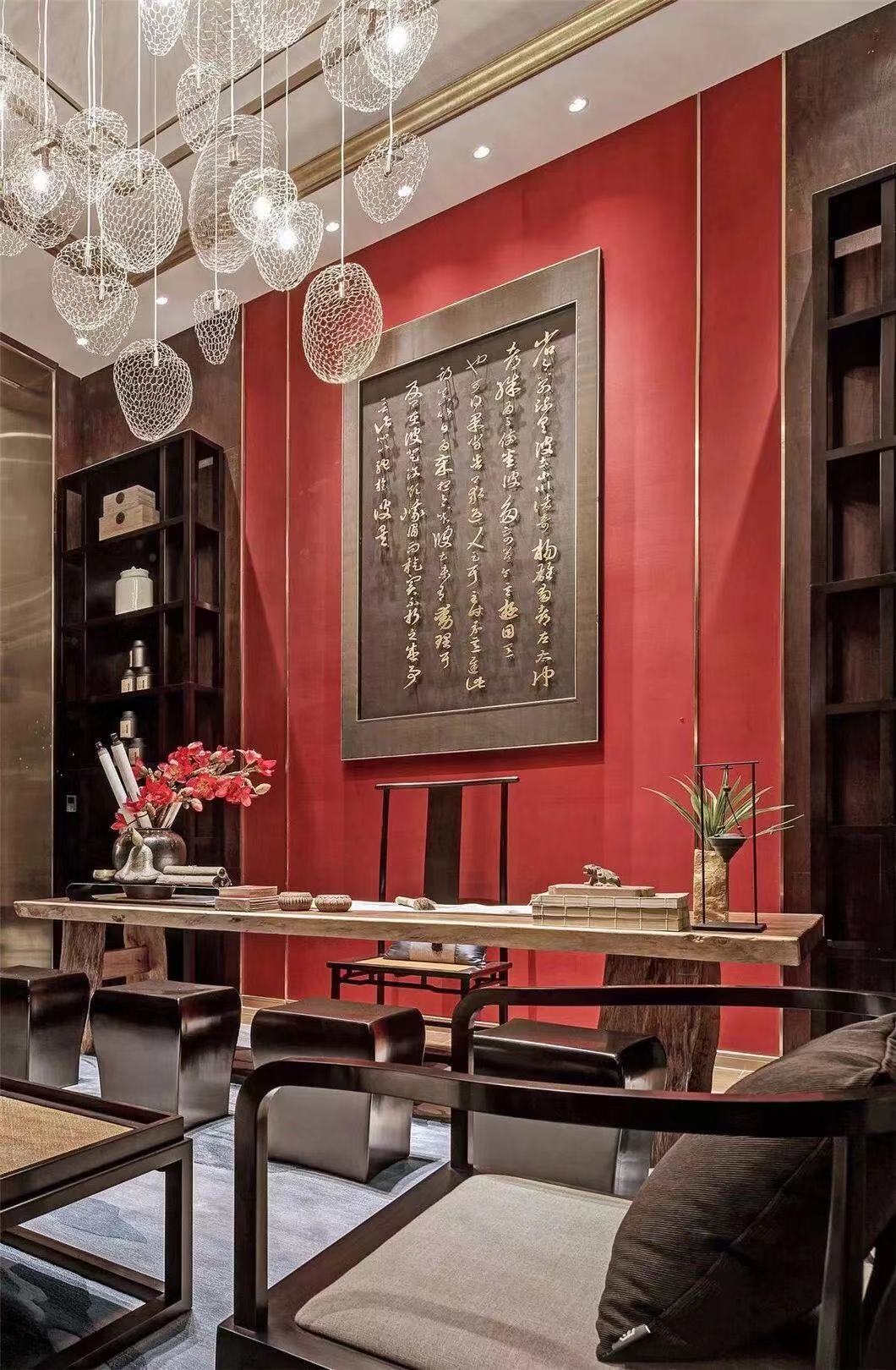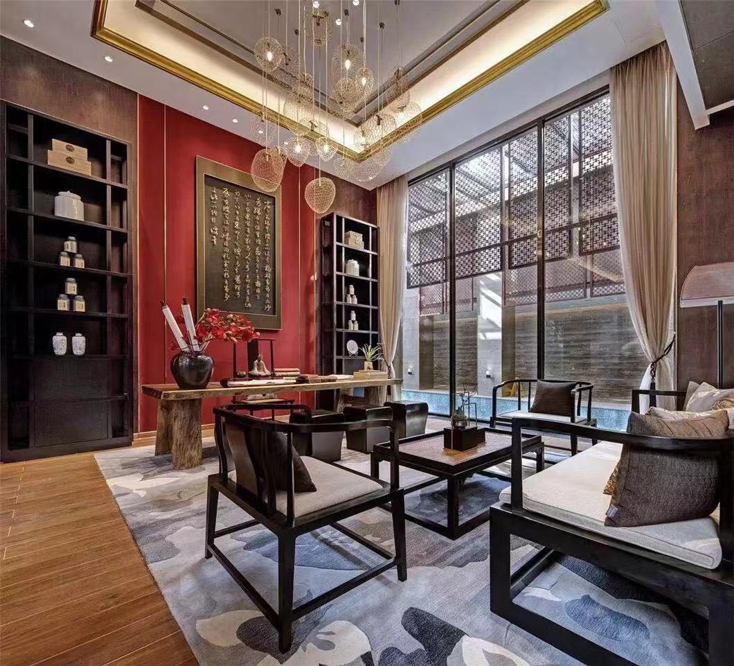 阳光幽幽穿过丛丛绿意的庭院,在简式的传统家具上斑驳跳跃。瓷的白净,檀木的香,丝绸的柔,挂画的壮丽,古雅高贵的气韵于此应运而生。
