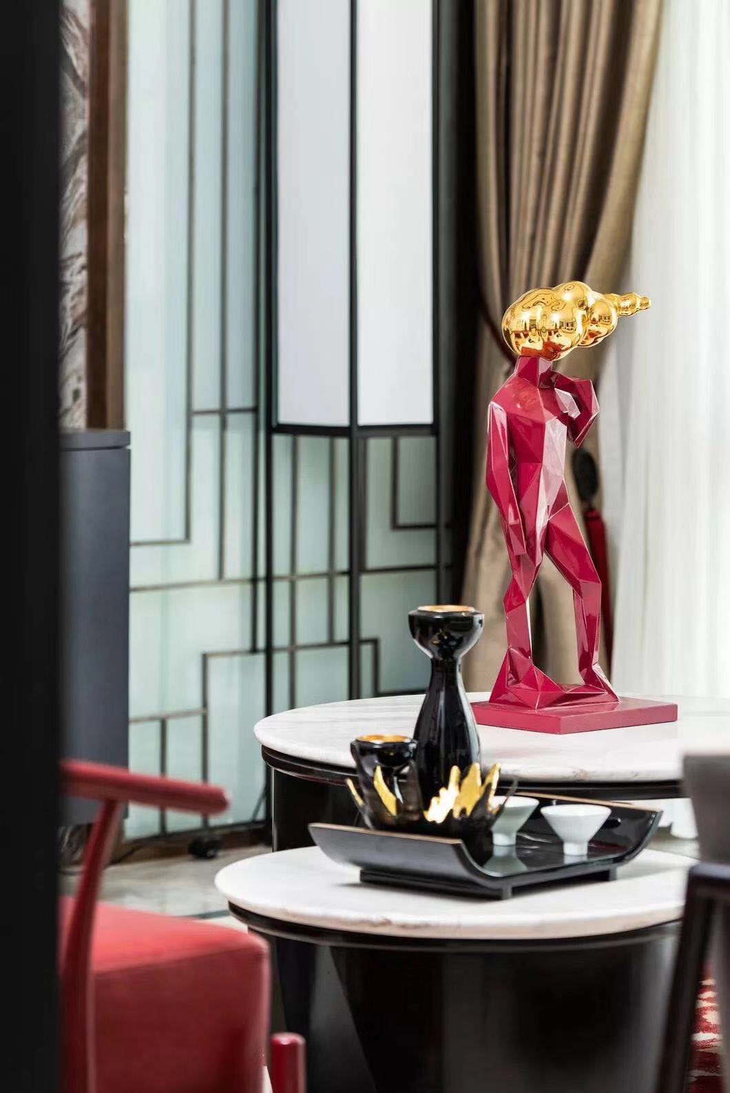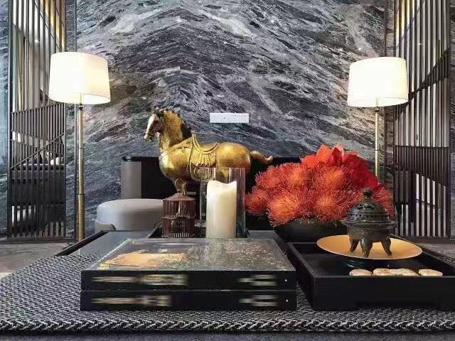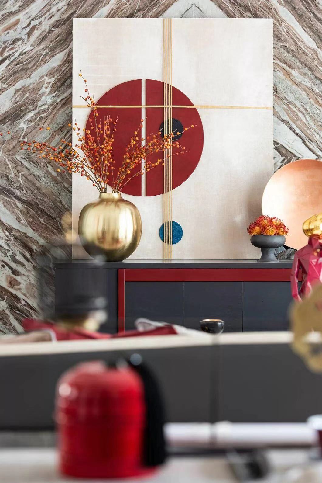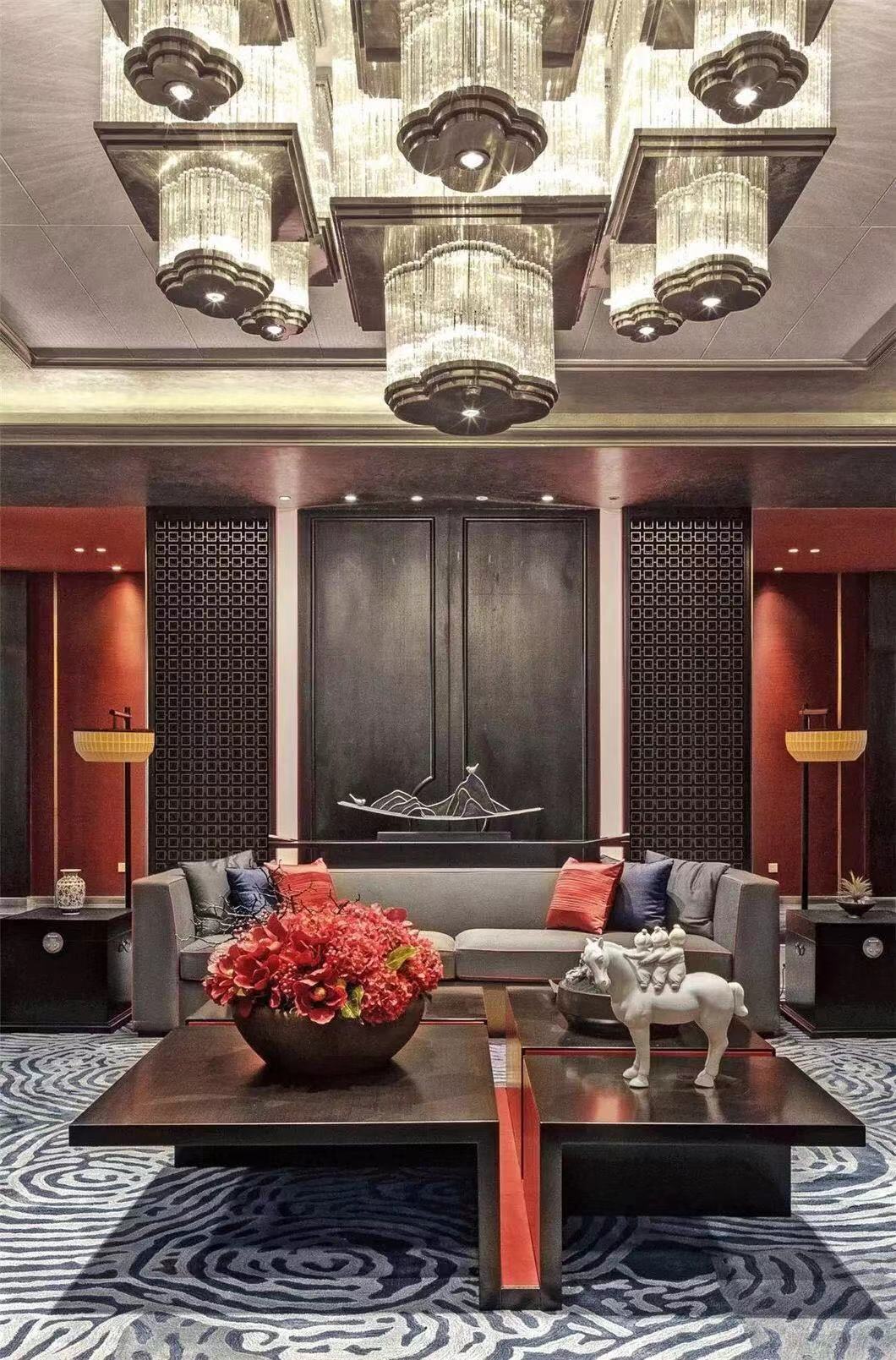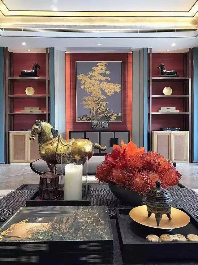 成双陈设的器物装饰,流丽轩昂的水晶吊灯,共同造就空间的秩序感与对称性,俨然大气。