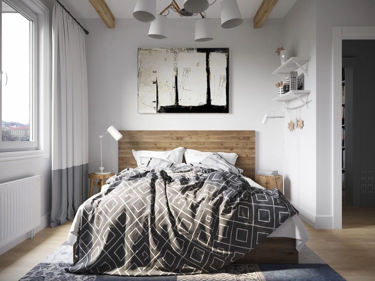 装饰画来进行卧室装扮,让人耳目一新。