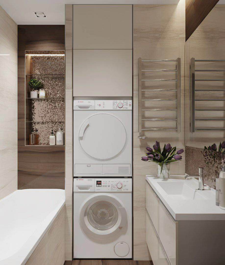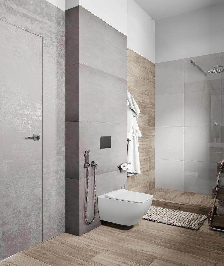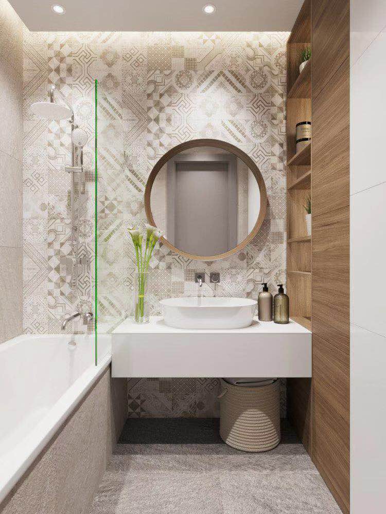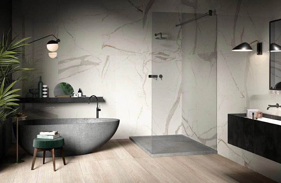 如果你不是白色的粉丝,可以通过温暖的米色,柔和的灰色甚至粉色系(粉蓝、粉红等)来营造空间的宽阔感。选择一款品位高雅的瓷砖
