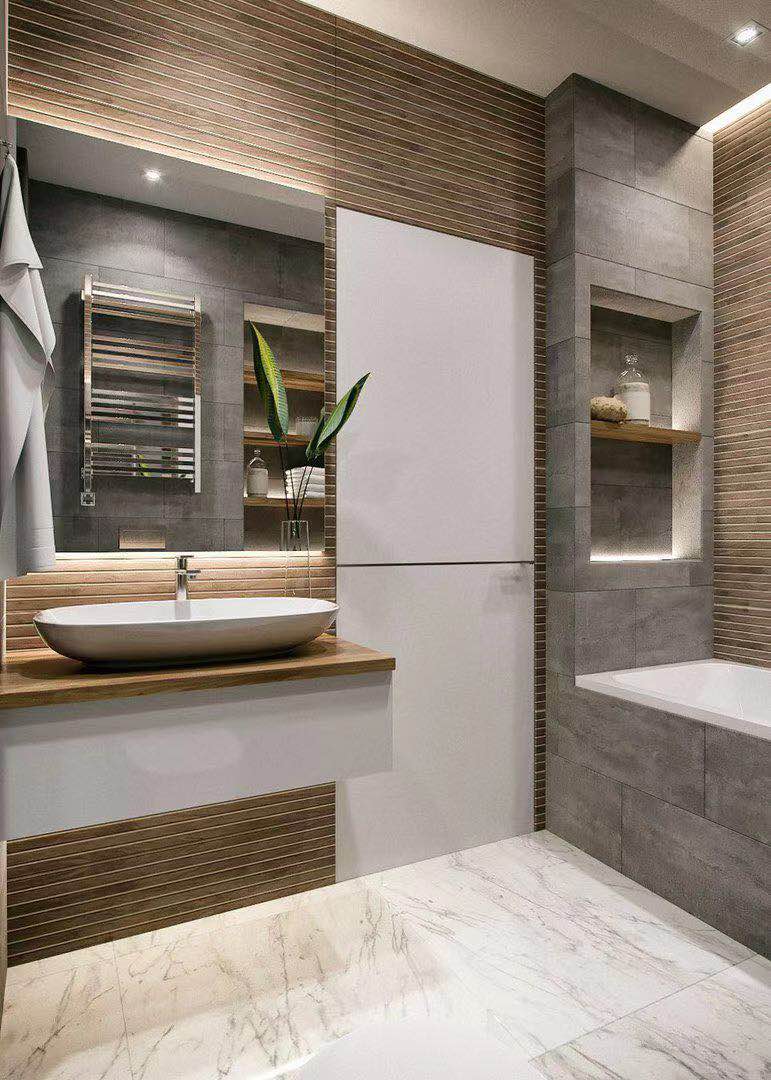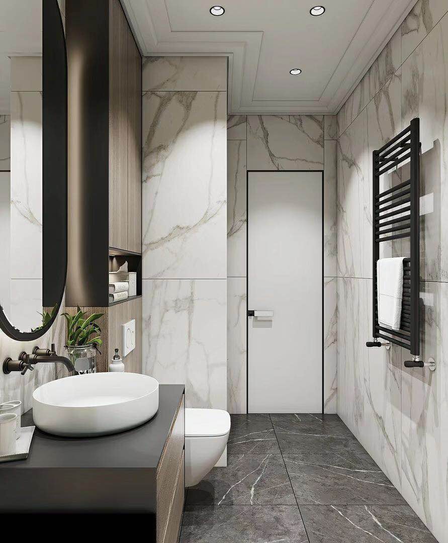 卫生间拥有丰富的照明方案是关键,最好在不同地点使用多个光源。天花板灯(可以使用多个灯泡),或现代边缘照明镜的网格将帮