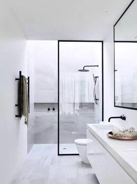 如果担心隐私曝光,你可以使用磨砂或有色玻璃,这依然可以达到很多光线透射的效果,不会让你在淋浴时感到局促压抑。如果不是特别需要,