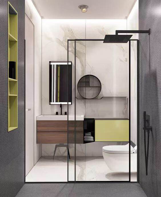 建议放弃浴缸,安装一个淋浴间足矣。浴缸会消耗大量宝贵的空间,而使用率又极低。