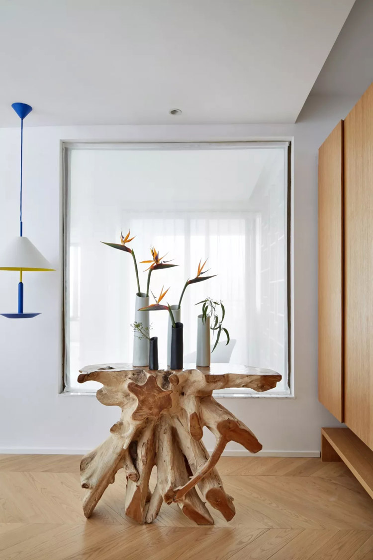业主三口一家,女主人将一间房留给了孩子作为活动室,另一间给了男主人作为静坐,修心的场所,她热爱生活,是一位花艺师,她说:“家居花艺在空间中扮演了一个小小的角色,戏份虽少,却能灵活奏亮整个空间的节奏和气氛”。