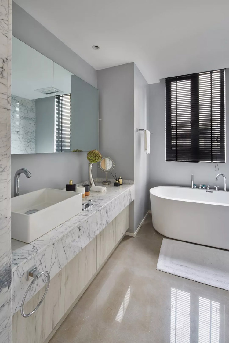 设计师觉得繁杂的装饰,过于庸俗,不如去繁为简,用最简单的黑白灰,让空间变得纯净,仿佛可以洗涤心灵。