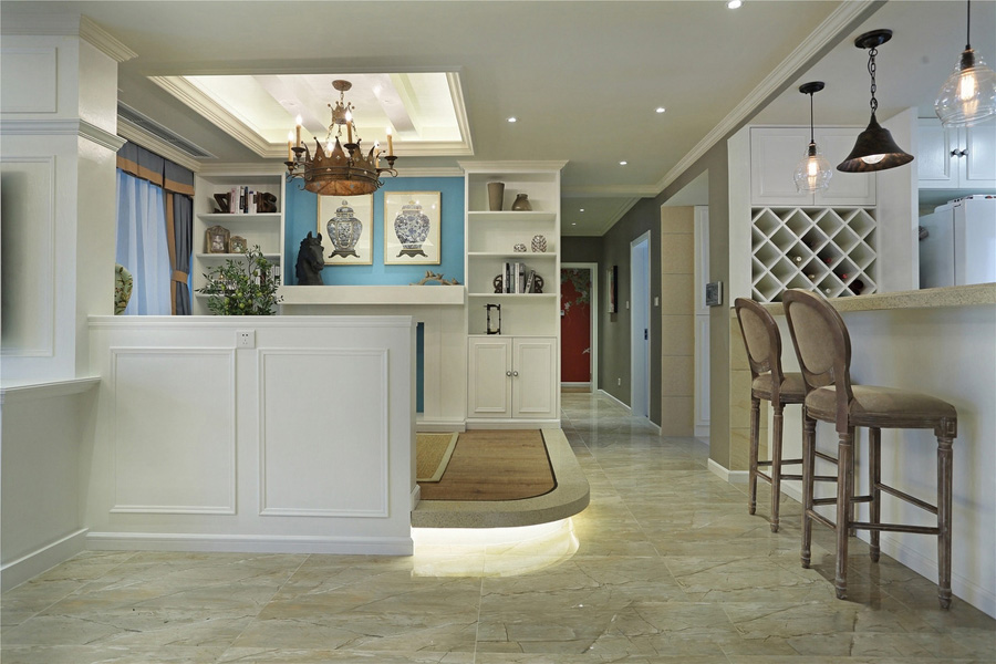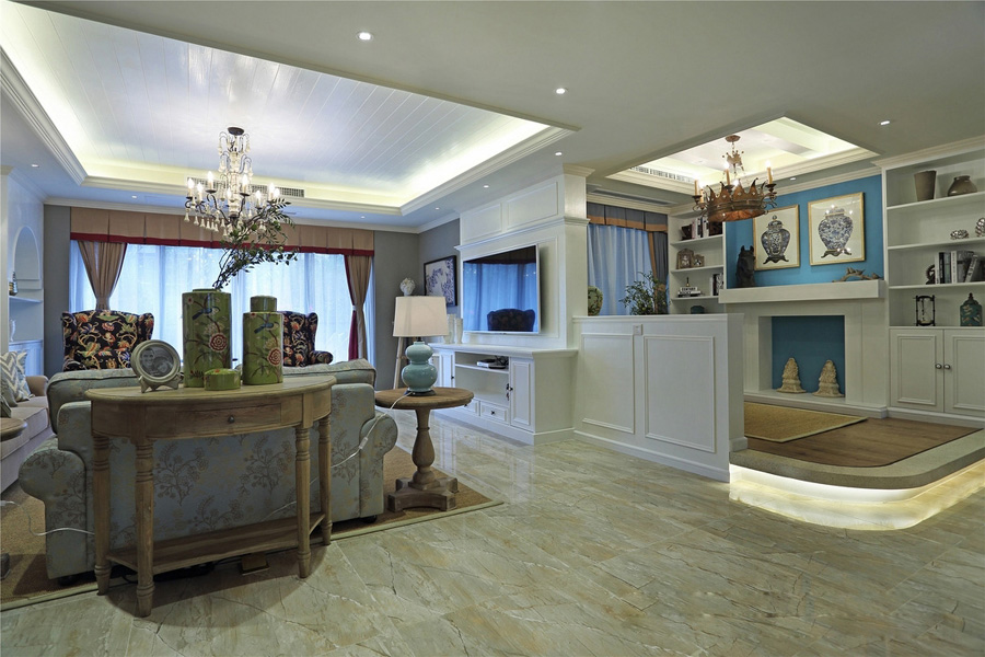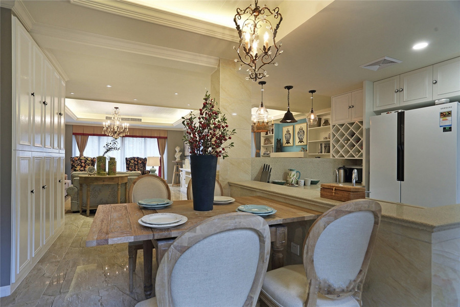 法式榆木家具体现原始、自然的复古情怀,而现代的白色家具和造型尽显美式时尚元素。