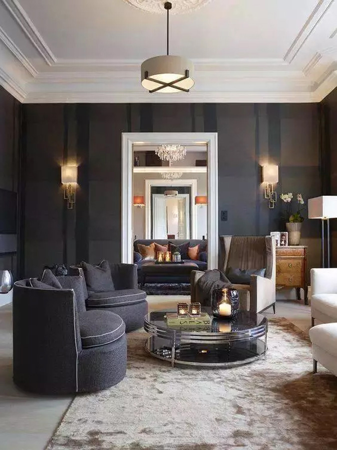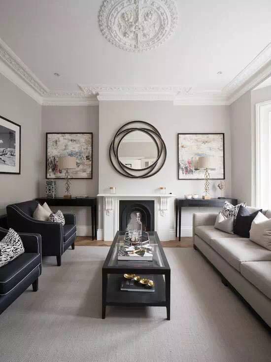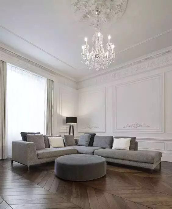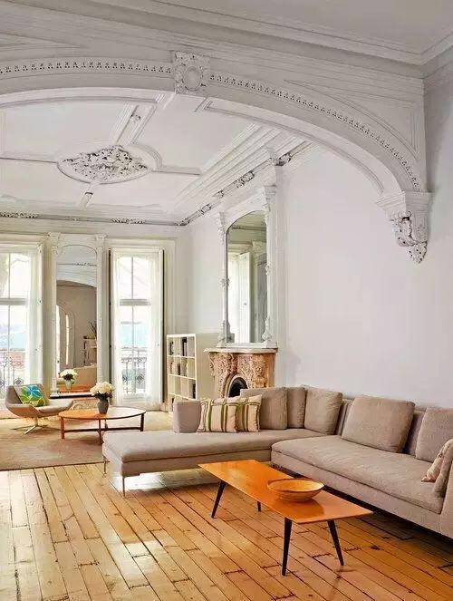 如果不想装吊顶,可以利用石膏线、吊灯、射灯、以及和墙面样式颜色的配合,都很容易营造出质感。