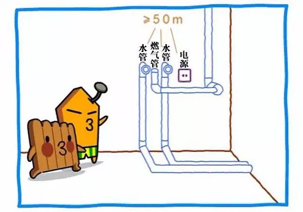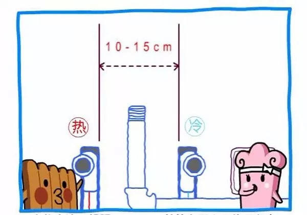 冷水管和热水管距离应在10-15cm,并且应布局在同一平面和高度,在下水口的正上方。