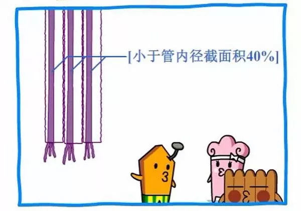 电线在电管里面的总截面积不应该超过管内径面积的40%。