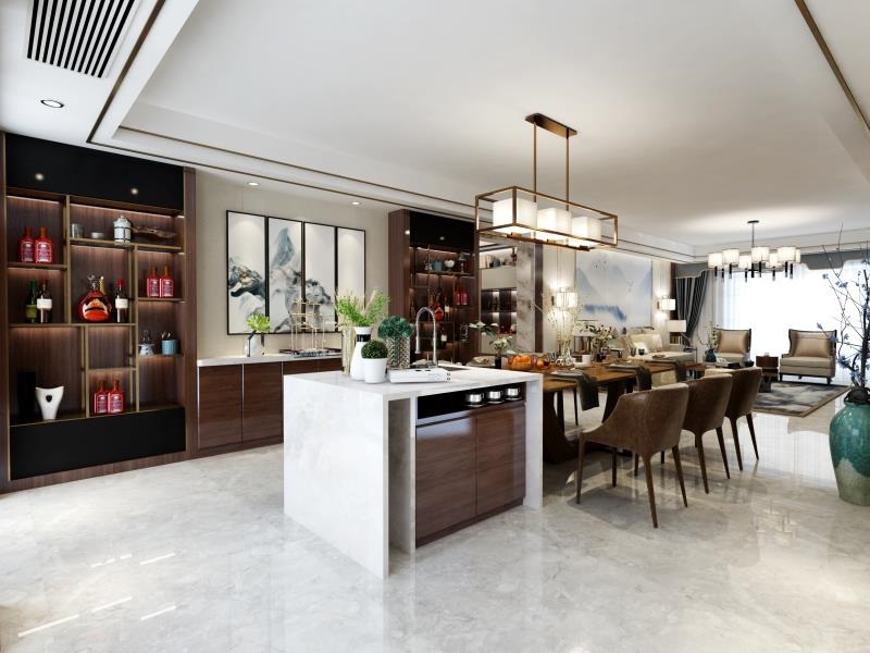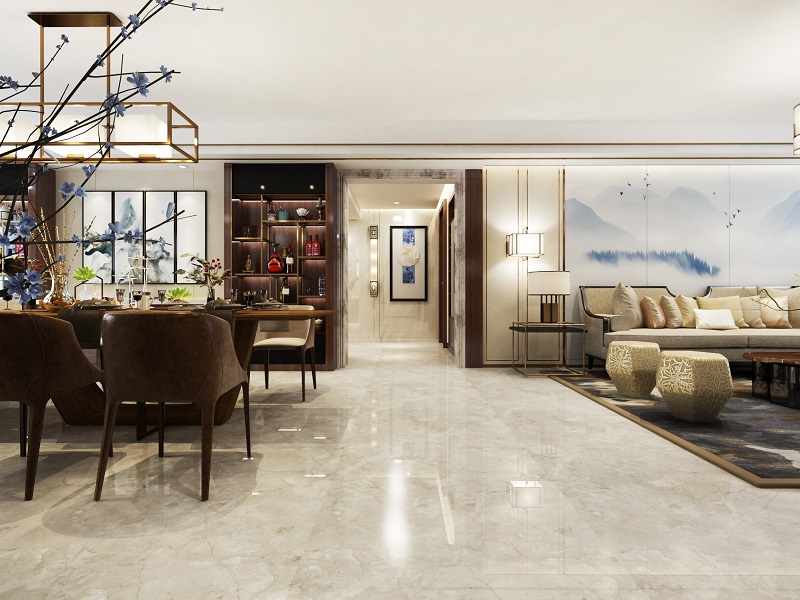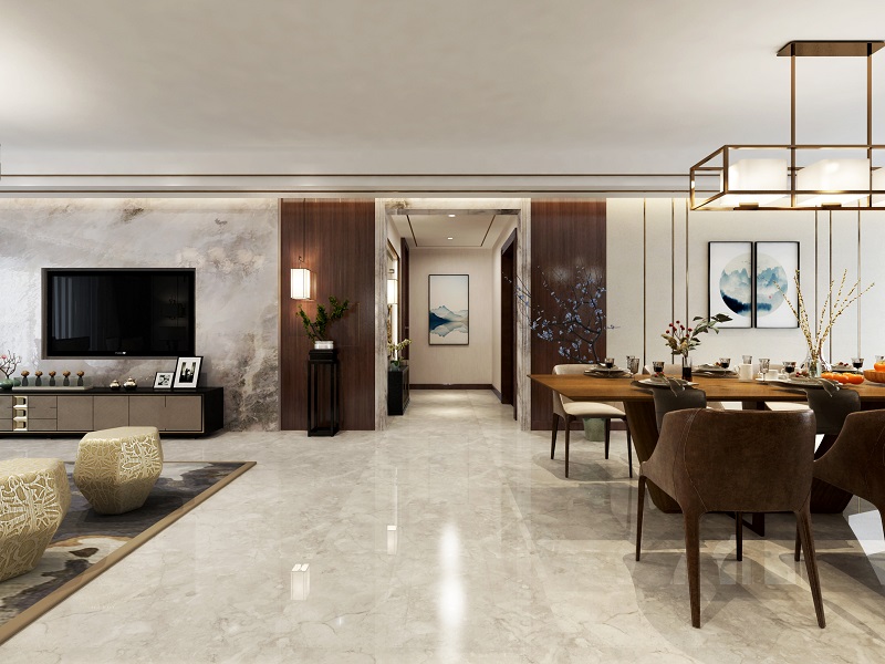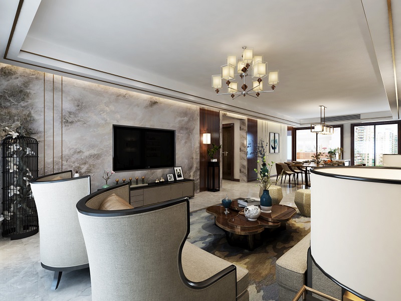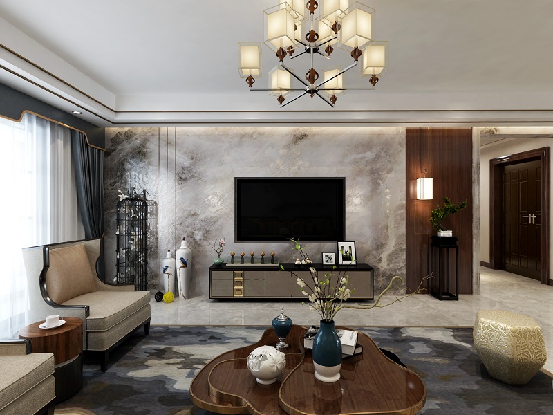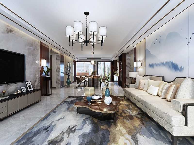 走进客厅,泼墨山水随处可见,将正直、坚韧、洒脱的精神传遍每一个角落,你怎能不受感染?米色的墙壁散发着清凉的气息,哪怕空气灼热、心情低落,都能在这清凉的气息中,找到归属、找到安慰。