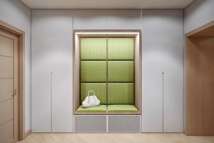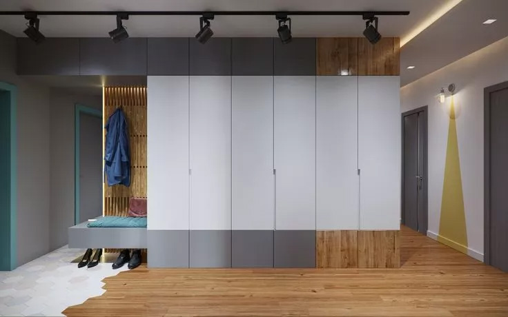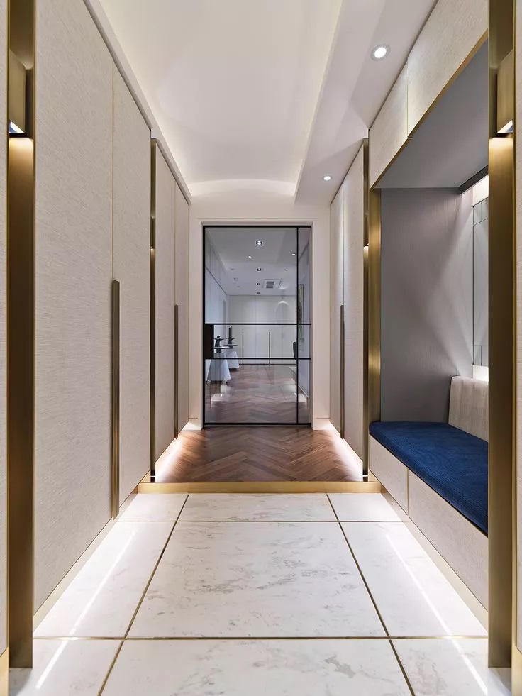 对于居家生活来说,门厅改装衣帽间是最科学不过的设计。造型简洁的组合柜不仅大气实用,中间或两边的区域还可以设计一个条凳用来休息或者换鞋,也调剂了大型组合柜带来的死板。