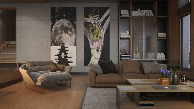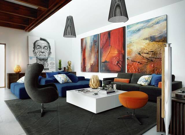 这样有趣的客厅,内部主题艺术作品增添了一层元素意识,使其呈现相当新颖。