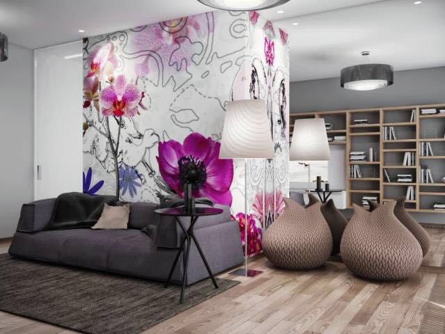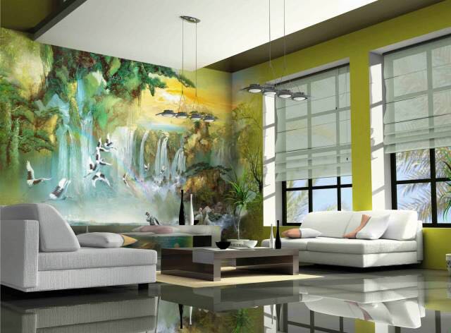 这是一种令人难忘的室内风格——这间客厅把一幅完整的墙壁壁画和一层如此精美的地板组合在一起,在平静的日子里,