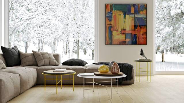 虽然这幅画在沙发的上方,当然可以单独站立,但它的视觉效果是通过起居室里的天然木色调和浅棕色的色调来增强的。