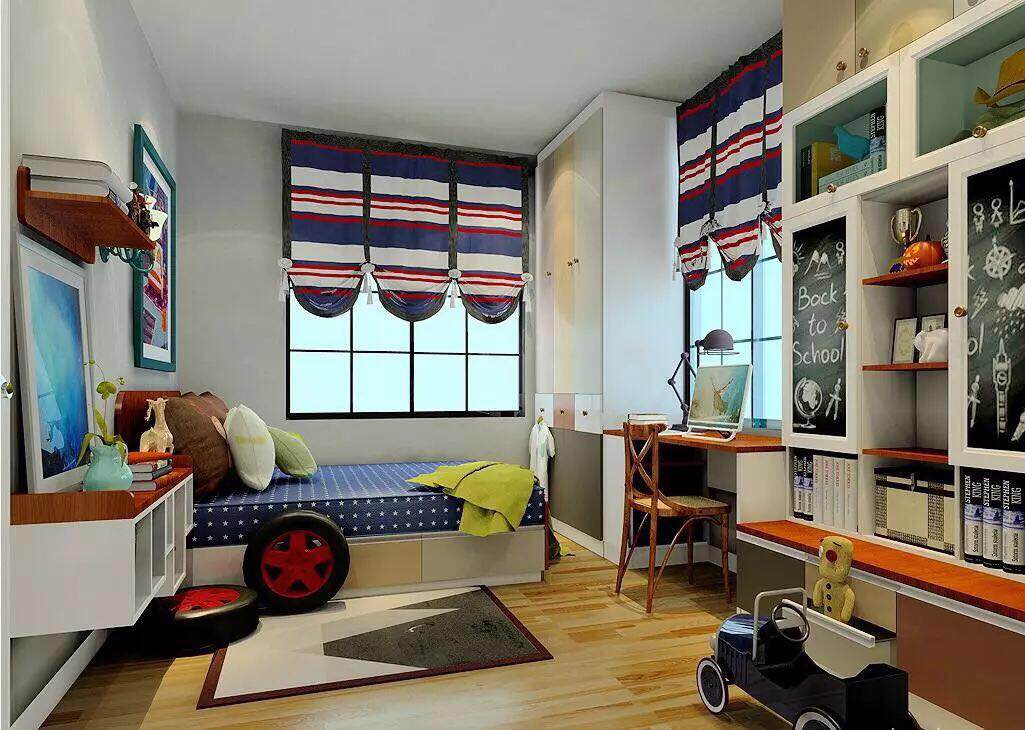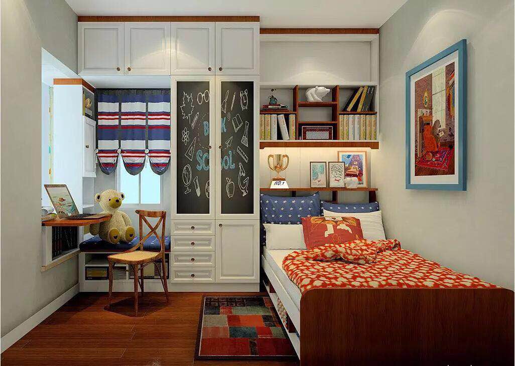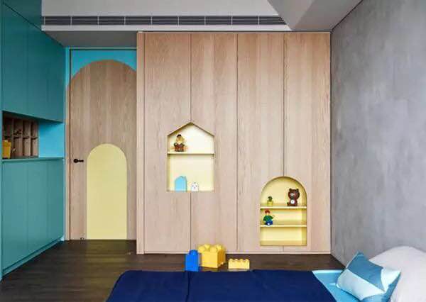 由于儿童的物品较多,玩具、书籍、衣物等林林总总,所以衣柜设计时最好考虑一物多用,预留足够的存放空间。