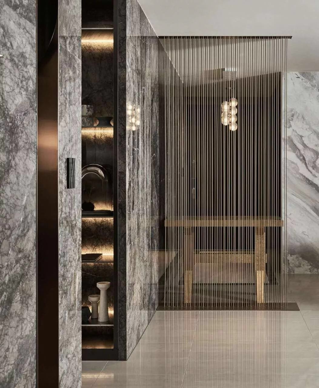 与格栅相似的是,线艺隔断也是采用线条的延展性,既分割空间,又不将空间完全隔开,隔中有连接,断中有连续,虚实结合。线艺隔断可以采用不同的材质,如金属、绳子等,将若隐若现的朦胧美含蓄优雅的呈现。