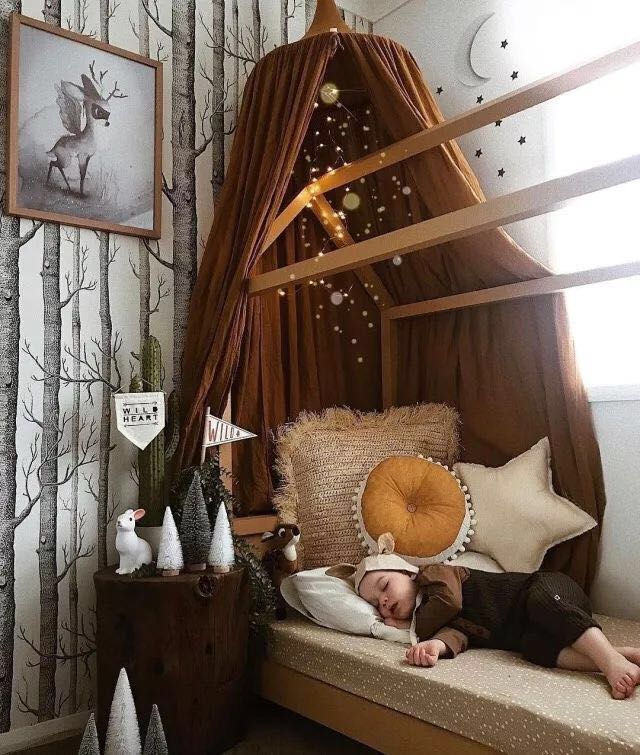 在房顶上加个帘幔,可以让小屋子看起来更显温馨,也让宝宝更有安全感~