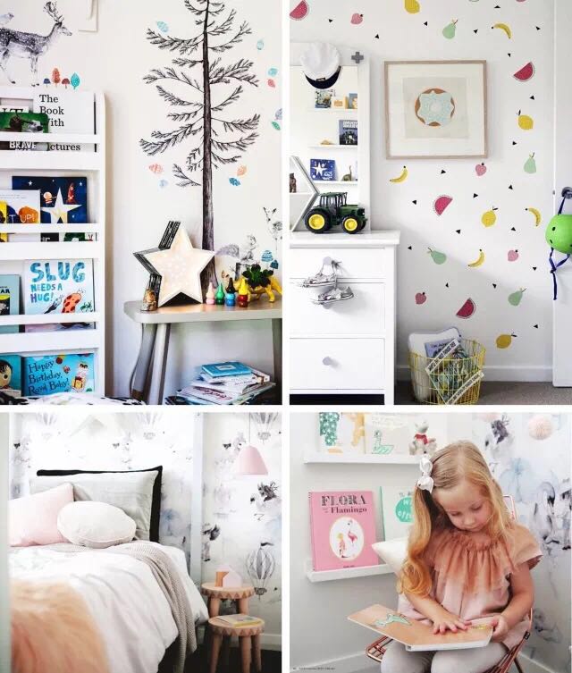 对于拍照来说,光有好看的道具还不够,如果背景只是空白大墙面,未免有些寡淡,小树、小花、小动物的墙纸非常适合孩子!