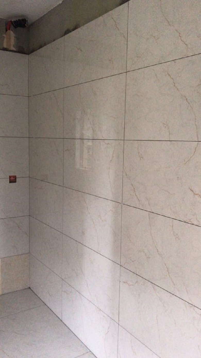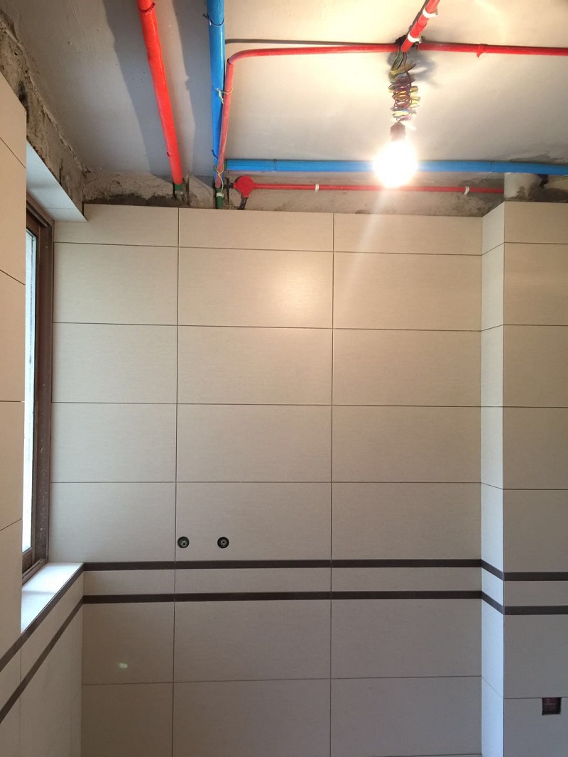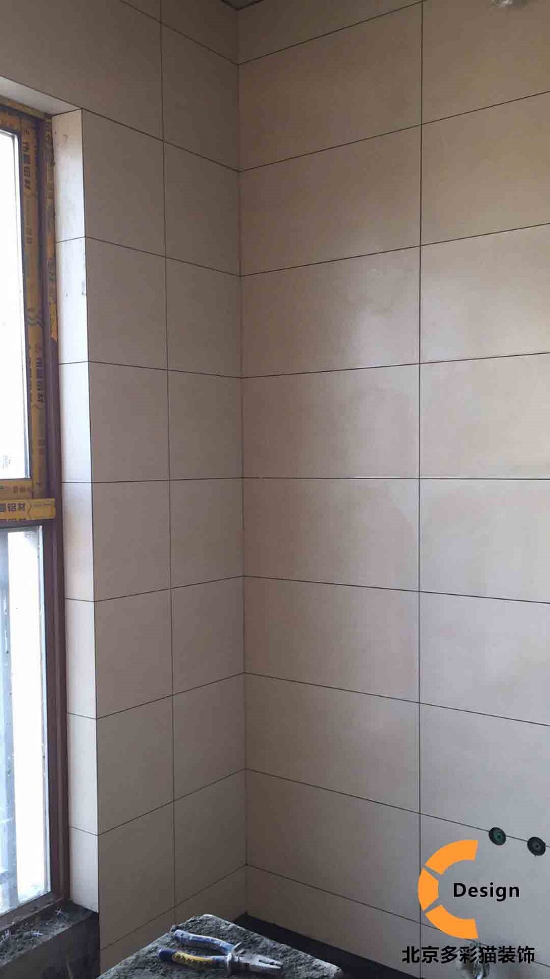 下面多彩猫下工地为大家拍了现场贴砖照片